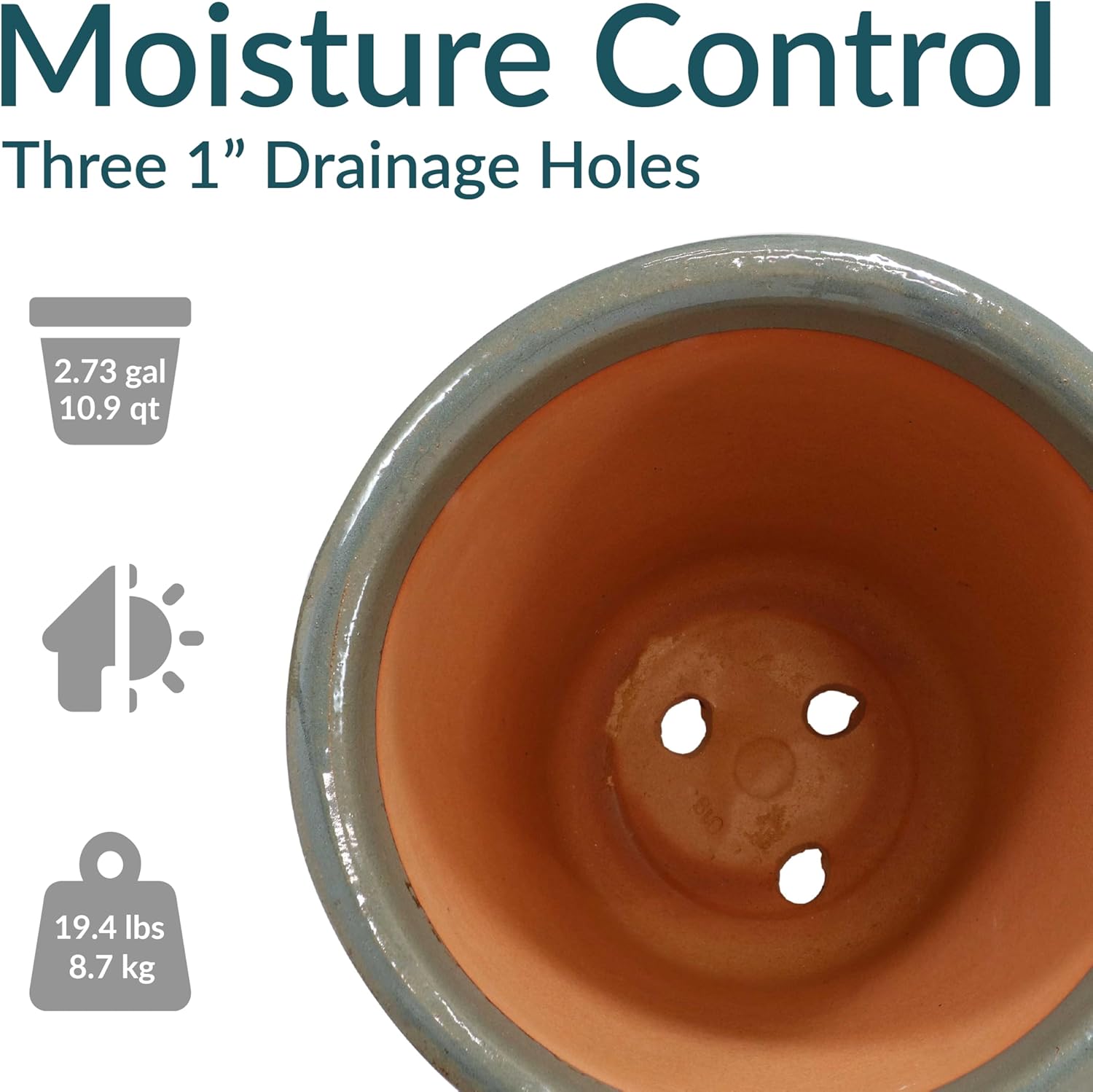 - LARGE SIZE FOR GROWING PLANTS: The large plant pot features a spacious top diameter and 2.73-gallon soil capacity that provides ample space for plants to grow. The planter has a 15" outer top diameter (12.75" inner diameter) x 8.5" outer base diameter (6" inner base diameter) x 12.5" H outer (11.5" H inner) and weighs 19.4 lbs.