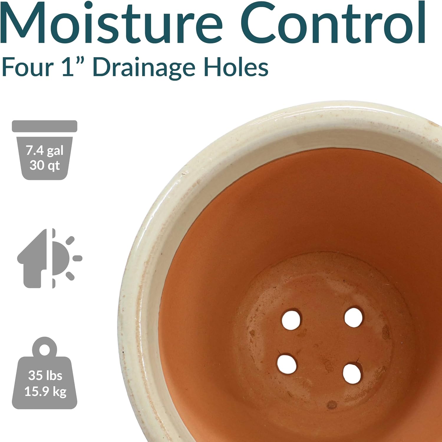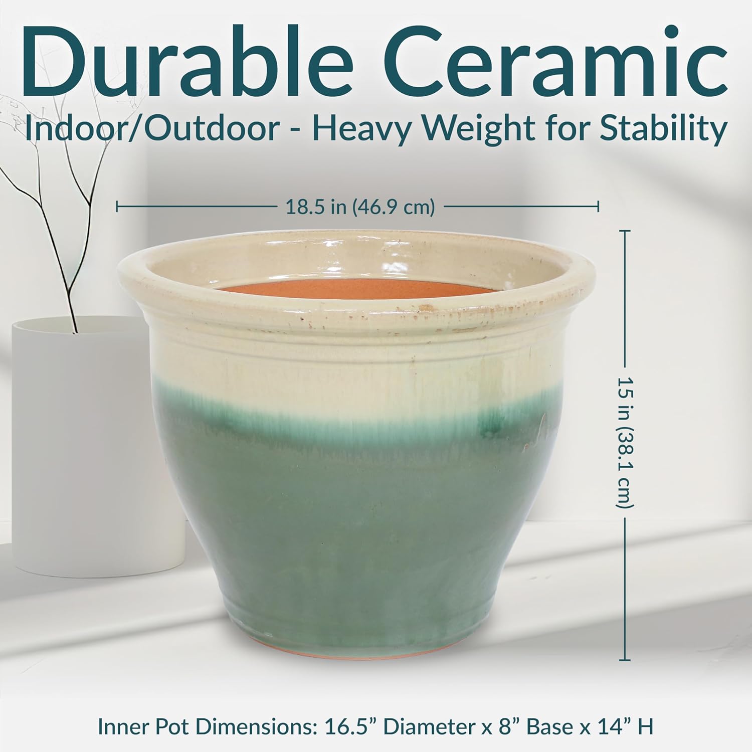 - DESIGNED FOR BEAUTY AND DURABILITY: This outdoor plant pot is crafted with a rich, hand-painted glazed finish that is kiln-fired for a classic, shining appearance. Subtle variations in color highlight the artisanal glazing process, making each piece truly unique. The durable ceramic construction offers natural UV and frost resistance, while its heavy weight adds stability to outdoor arrangements, keeping the planter upright in windy conditions.