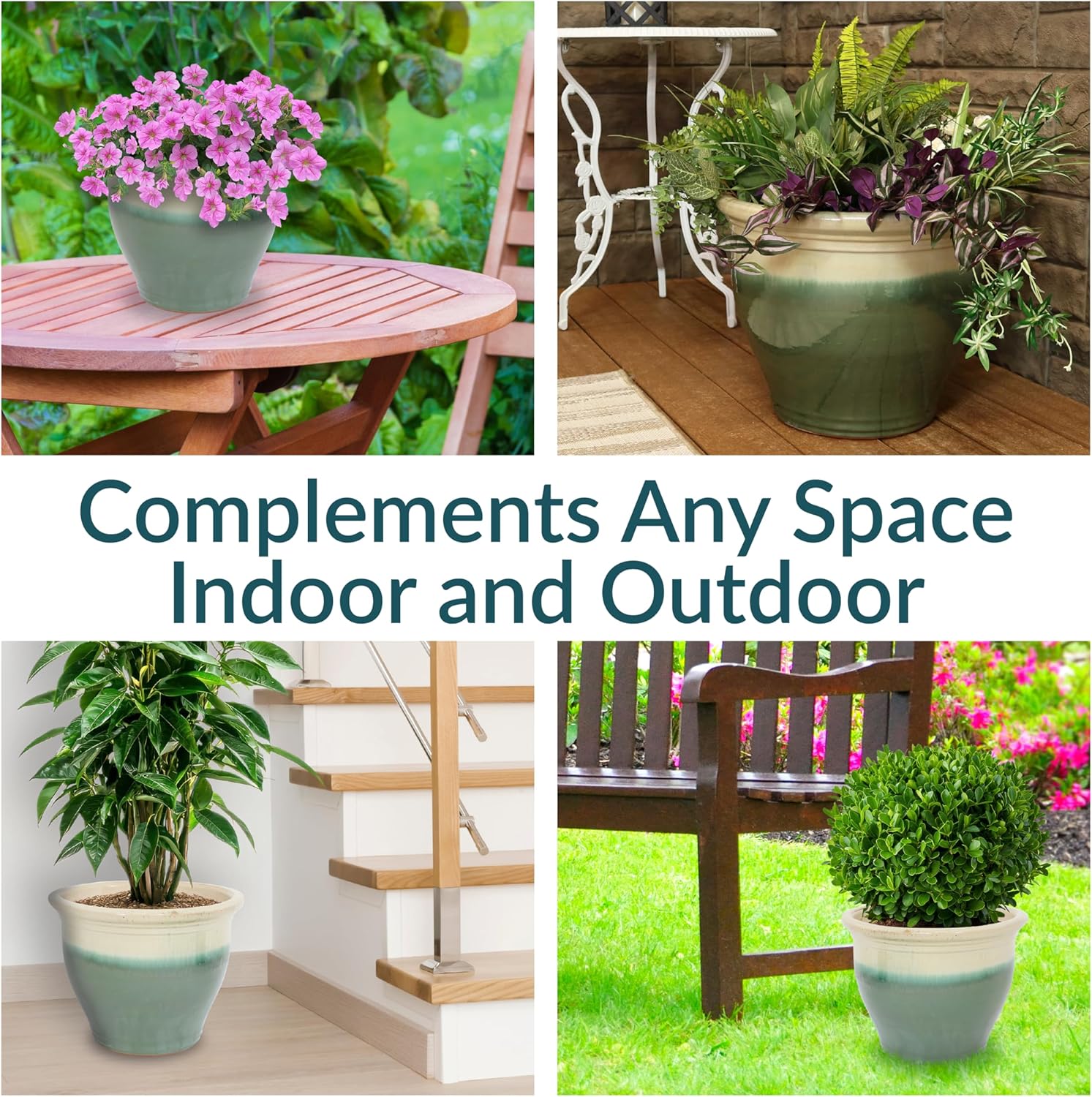 - VERSATILE PLACEMENT: Use this round garden planter on the patio, deck, or porch to add flowers to outdoor spaces, or set the planter in the sunroom, living room, or dining room to bring life to indoor spaces. If using it indoors, place a saucer (not included) beneath the flowerpot to prevent water and soil from leaking on the floor. The drainage in the bottom of the pot provides optimal air circulation and prevent water from pooling.