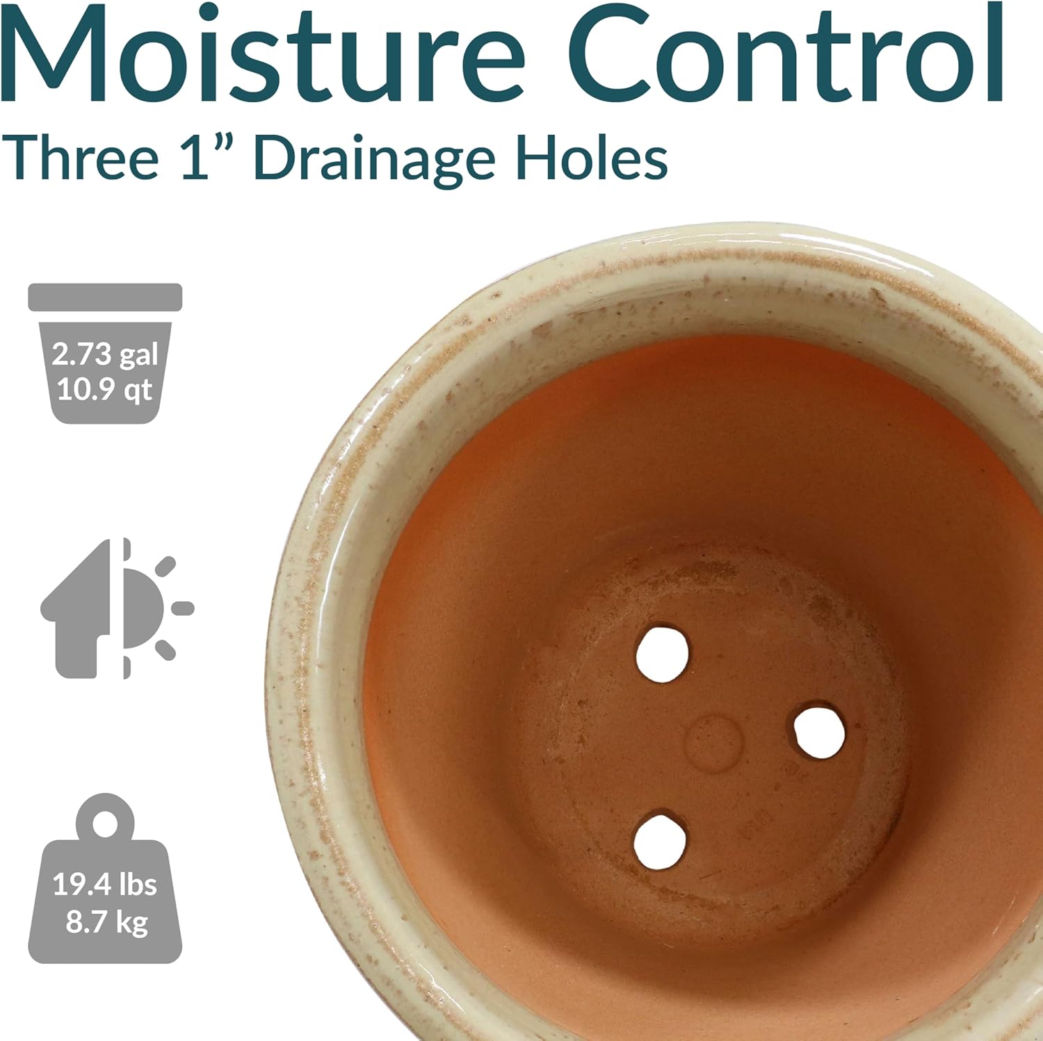 - LARGE SIZE FOR GROWING PLANTS: The large plant pot features a spacious top diameter and 2.73-gallon soil capacity that provides ample space for plants to grow. The planter has a 15" outer top diameter (12.75" inner diameter) x 8.5" outer base diameter (6" inner base diameter) x 12.5" H outer (11.5" H inner) and weighs 19.4 lbs.