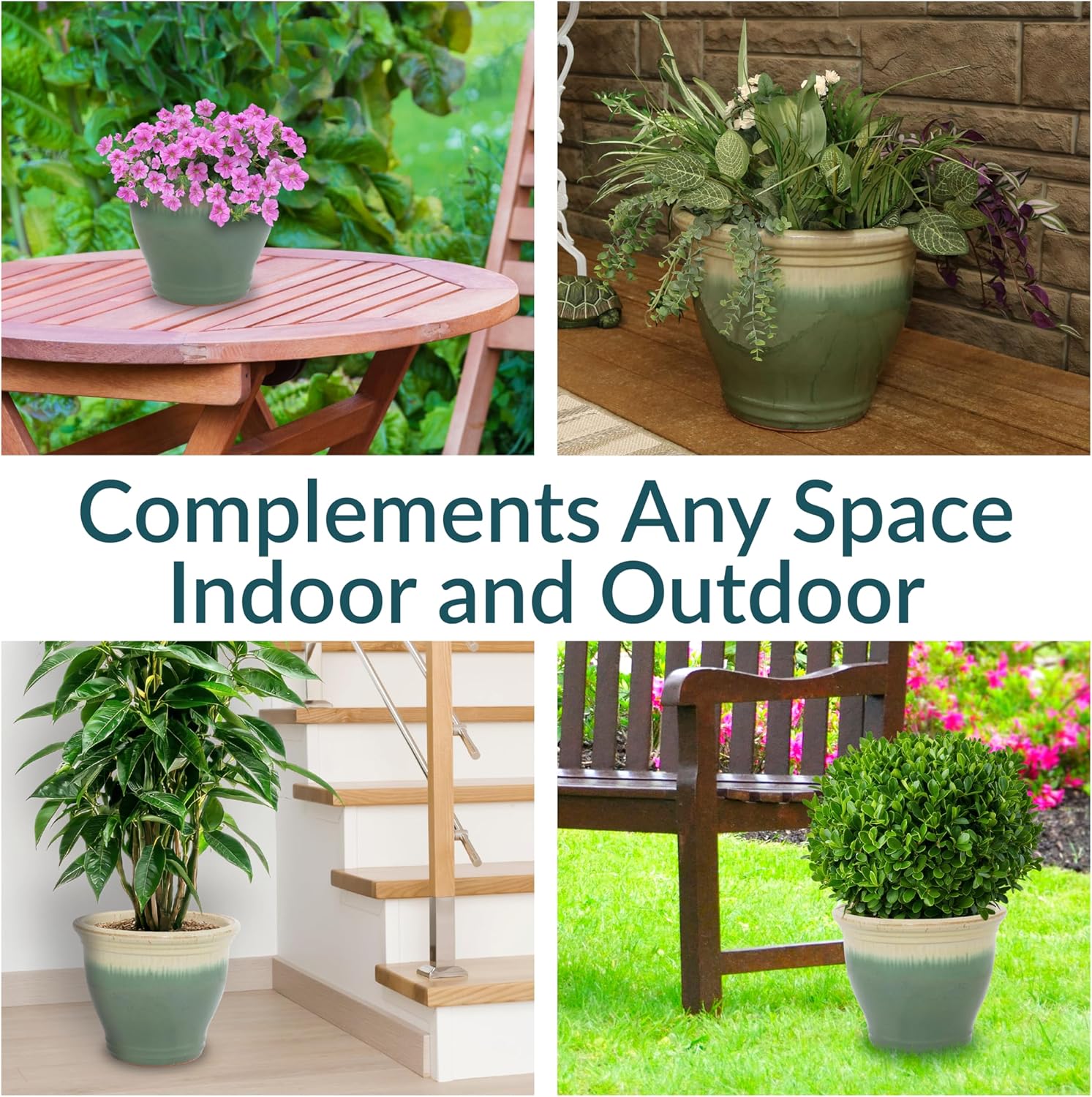 Sunnydaze Studio Large Ceramic Plant Pot - Round Outdoor Glazed Ceramic Planter Pot with Drainage - Seafoam - 14.5"