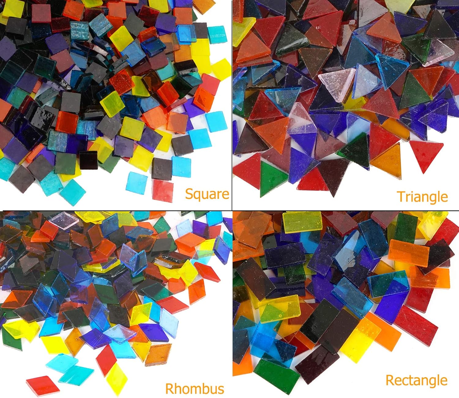 Lanyani 1600 Transparent Cathedral Glass Mosaic Tiles for Arts and Crafts - Mixed Color Stained Glass Pieces, 4 Shapes Mixed