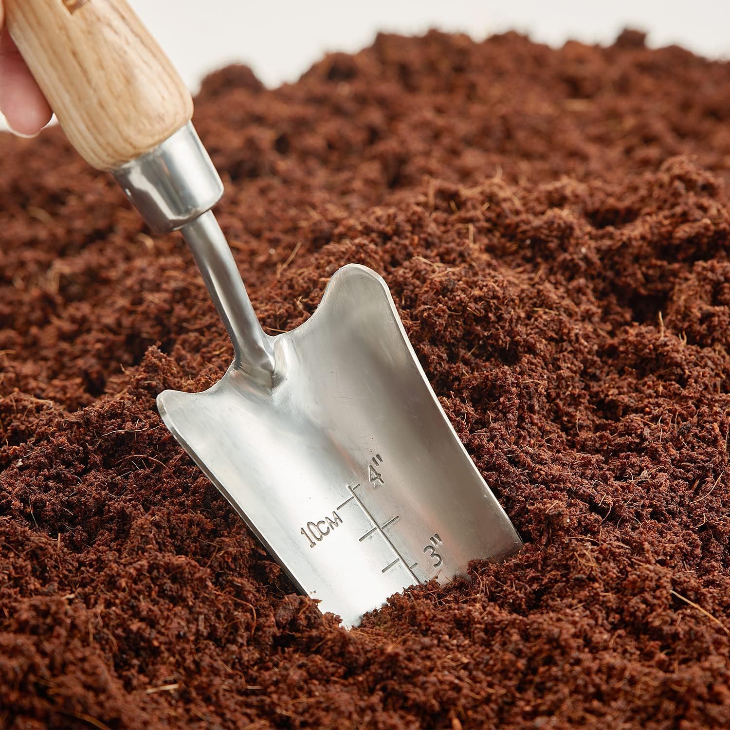 Berry&Bird Transplant Trowel with Measurements, Garden Stainless Steel Potting Hand Trowel with Wooden Handle, Small Garden Hand Shovel Transplanter Tool for Planting Digging Transplanting Gardening