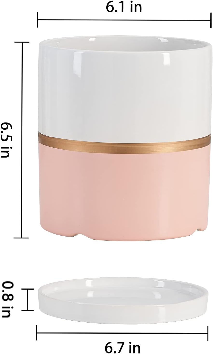 Ekirlin 6 inch Plant Pot - Ceramic Flower Planters Indoor - Modern Succulents Containers with Drain Hole Saucer, Decorate Home, Office & Outdoor (Pink)
