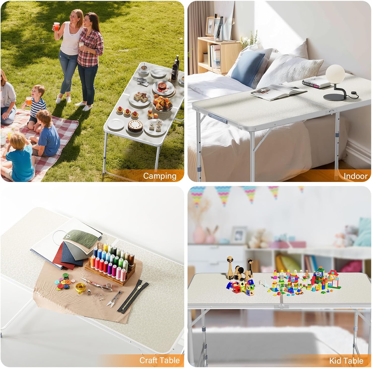 - MULTIPURPOSE TABLE: The foldable table is universal . Perfect for outdoor and indoor activities, camping, picnic, hiking, fishing, Dining, BBQ, party, travel, gathering, concert, sports, event.