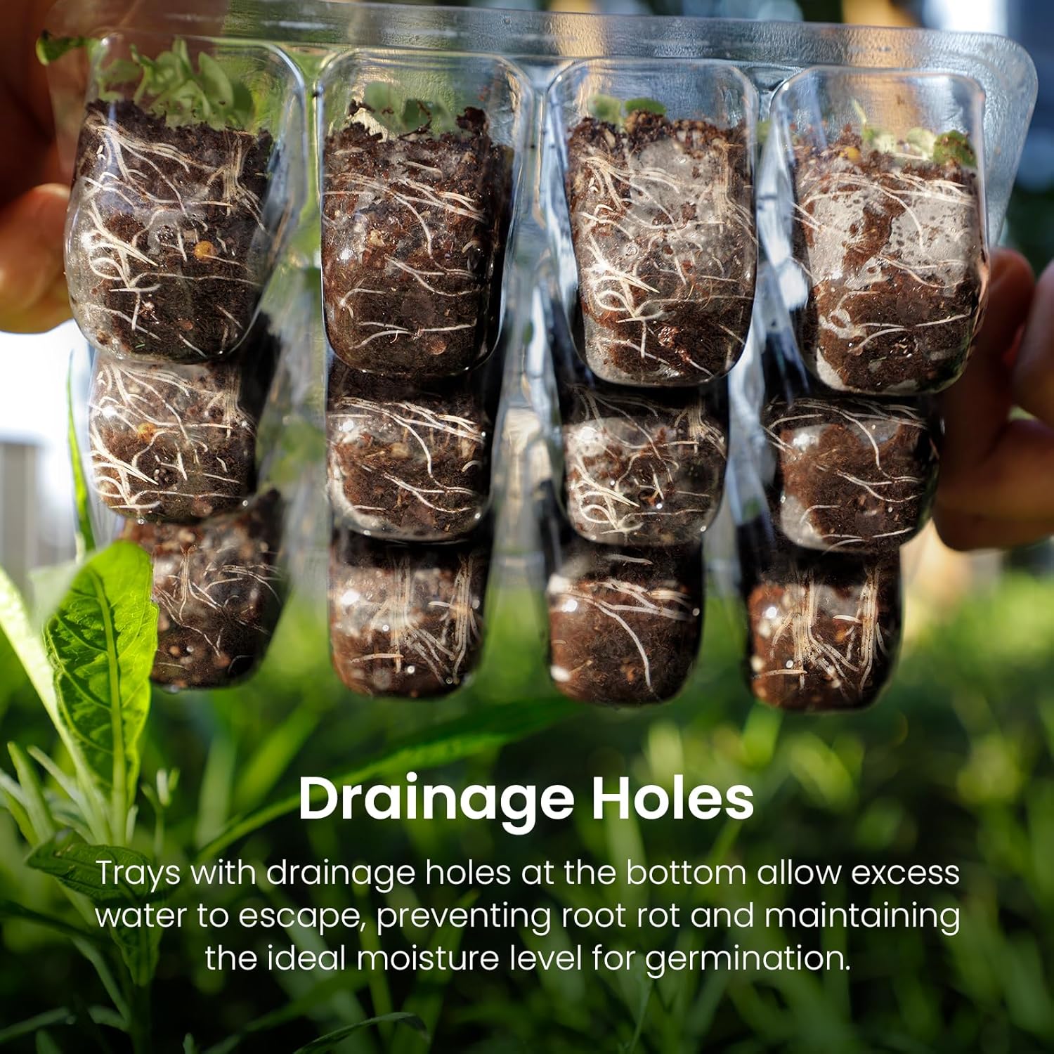 - 【Drainage System to Prevent Overwatering】Each cell measures 1.5x1.5x2IN (WxDxH) and features drainage holes at the bottom to ensure proper water flow, preventing root rot and overwatering. This helps your plants get balanced moisture and healthy root development, allowing them to thrive.