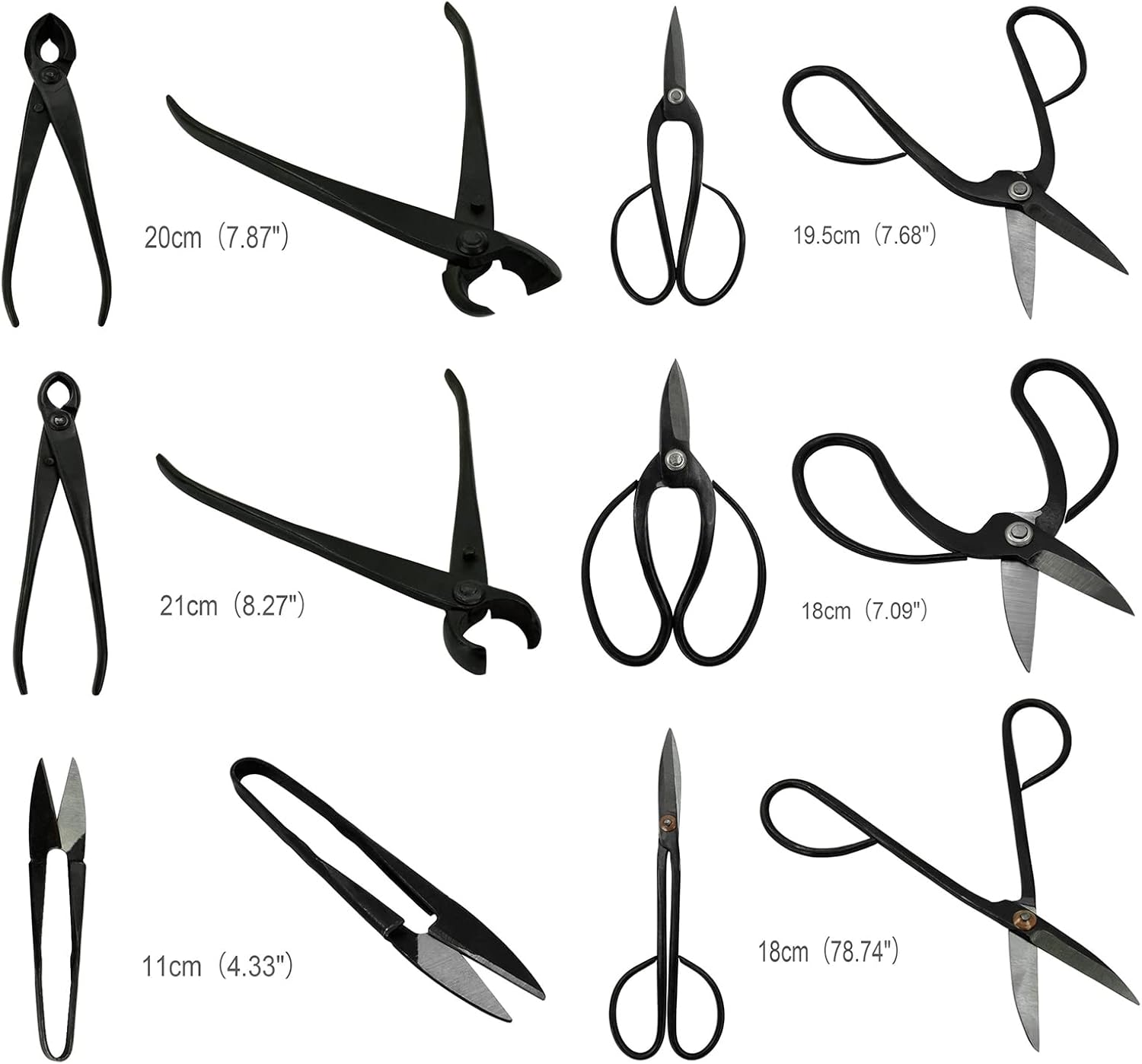 - 10 carbon steel Bonsai Tools Kit Set including Leaf Trimmer, Scissors, Jin pliers, Root Hook, Knob Cutter, Aluminium Wires and Wire cutter, etc. All well packed in a Nylon zipped case.