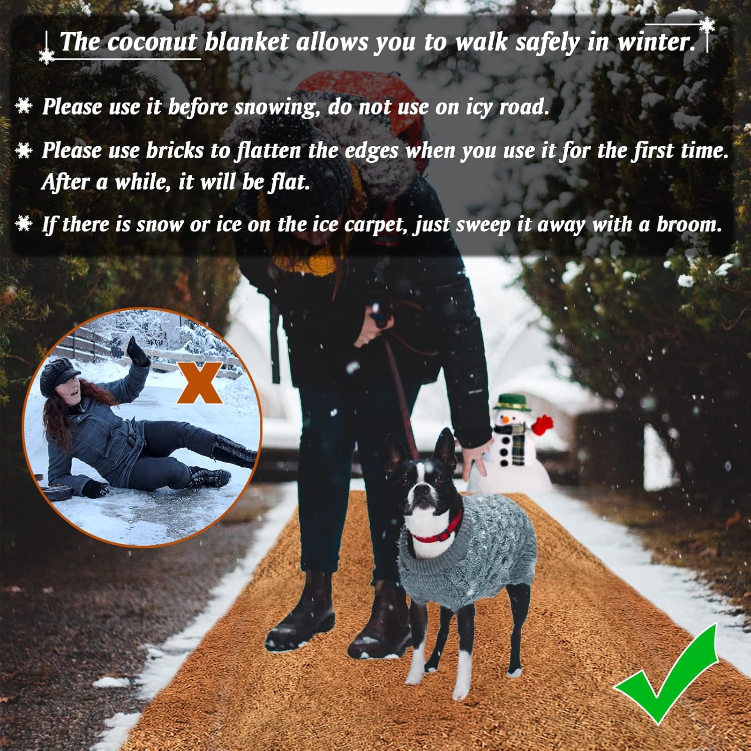 - Material: Natural coconut fiber, because they can adhere firmly to the moisture in the snow and ice in a low environment, you can rest assuranced when your families, your pet and yourself walking on it. The effect of non-slip is good in the snow and ice weather