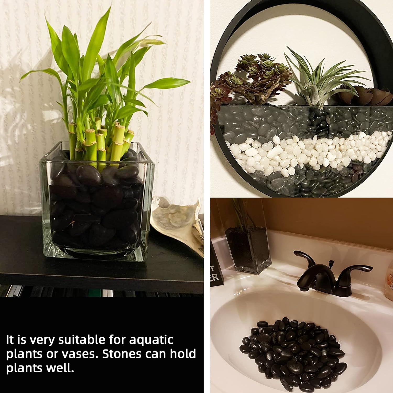 - đăWIDE USESăYou can use these black polished stones to design or decorate your plants, aquariums, vases, glass containers, fountains, walkways, water features, miniature landscapes, and fairy-tale garden stones.It is perfect for home decor and a creative interior and exterior design.
