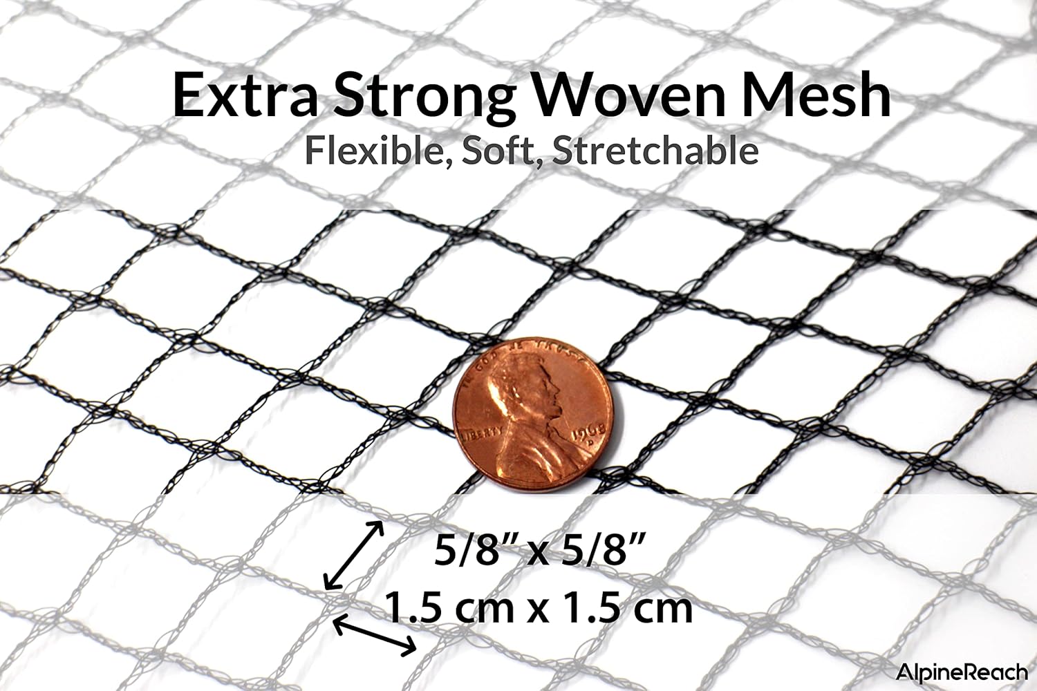 AlpineReach Garden Netting 15 x 30 ft Heavy Duty Bird Net, Deer, Plant Protection Extra Strong Woven Mesh, Reusable Kit with Zip Ties, Animal Fencing for Fruits Trees, Black