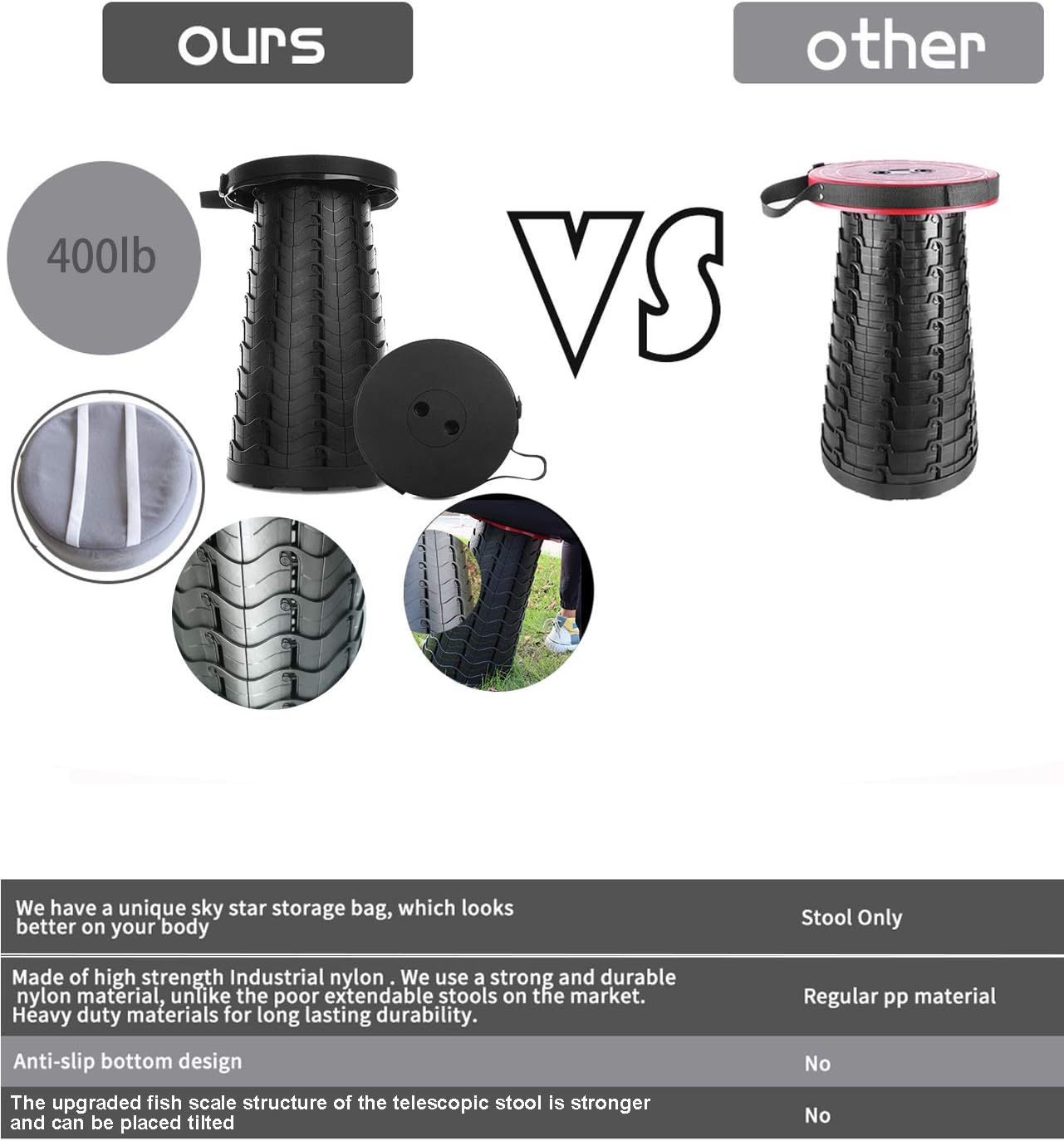 - 💖US.PATENTED FISH SCALE STRUCTURE : US.patented design fish scale structure and modified plastic material endow the collapsible stool with extraordinary strength and rigidity. The real load capacity reaches 397 lbs, far exceeding other brands. Sitting shattered within a year, please contact us to change the new one