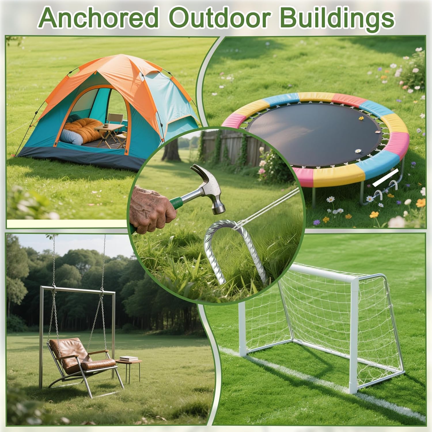 - Multipurpose:Can use trapping steel stakes heavy duty to hold down the trampolines, swing sets,ground anchor, slides,fences, yard decorations, tents, nets,canopy stakes,chain link fence stakes