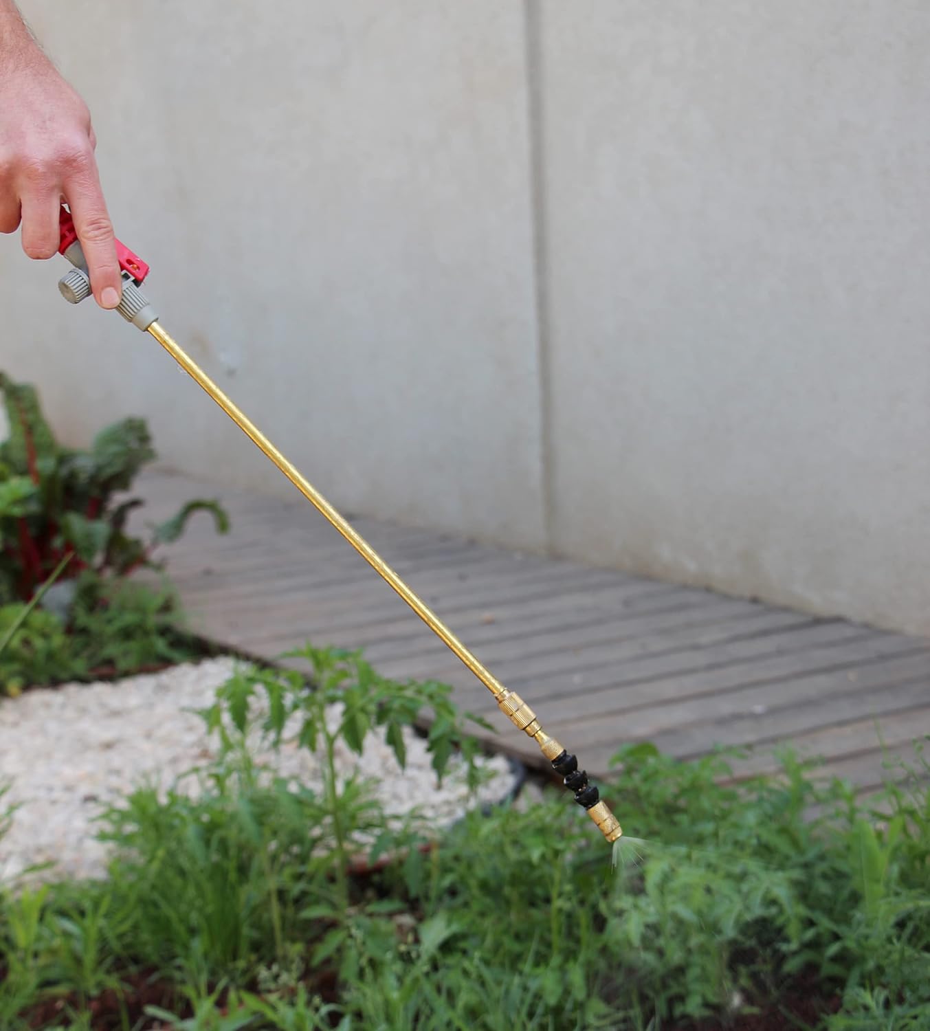 - TELESCOPIC EXTENDABLE SPRAYING WAND: Enjoy a better reach and work standing up straight with the help of the sprayer wand. The comfort-grip handle has a locking trigger, so you can rest your hand while keeping a constant continuous flow. At the tip, you can adjust the water spray intensity can be adjusted by rotating the nozzle from water mist to water jet.