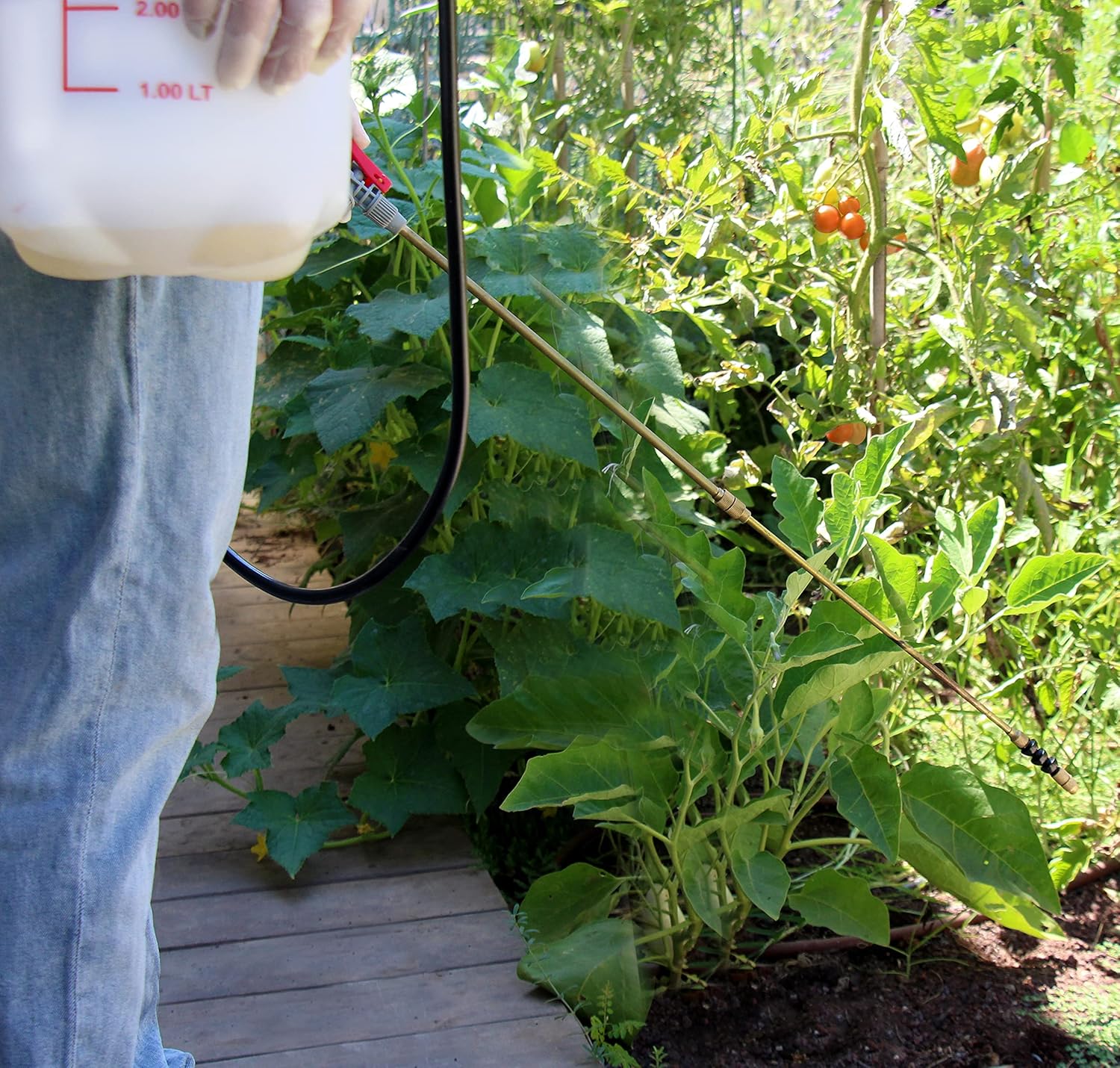 - PRACTICAL PUMP SPRAYER: portable 1.3-gallon compression sprayer for indoor and outdoor use. This sturdy hand sprayer can be used for vegetable gardens, cleaning cars, irrigating plants, pet bathing, and home cleaning. This product is suitable for spraying water up to 131°F and is NOT suitable for caustic, corrosive or acidic (vinegar) solutions.