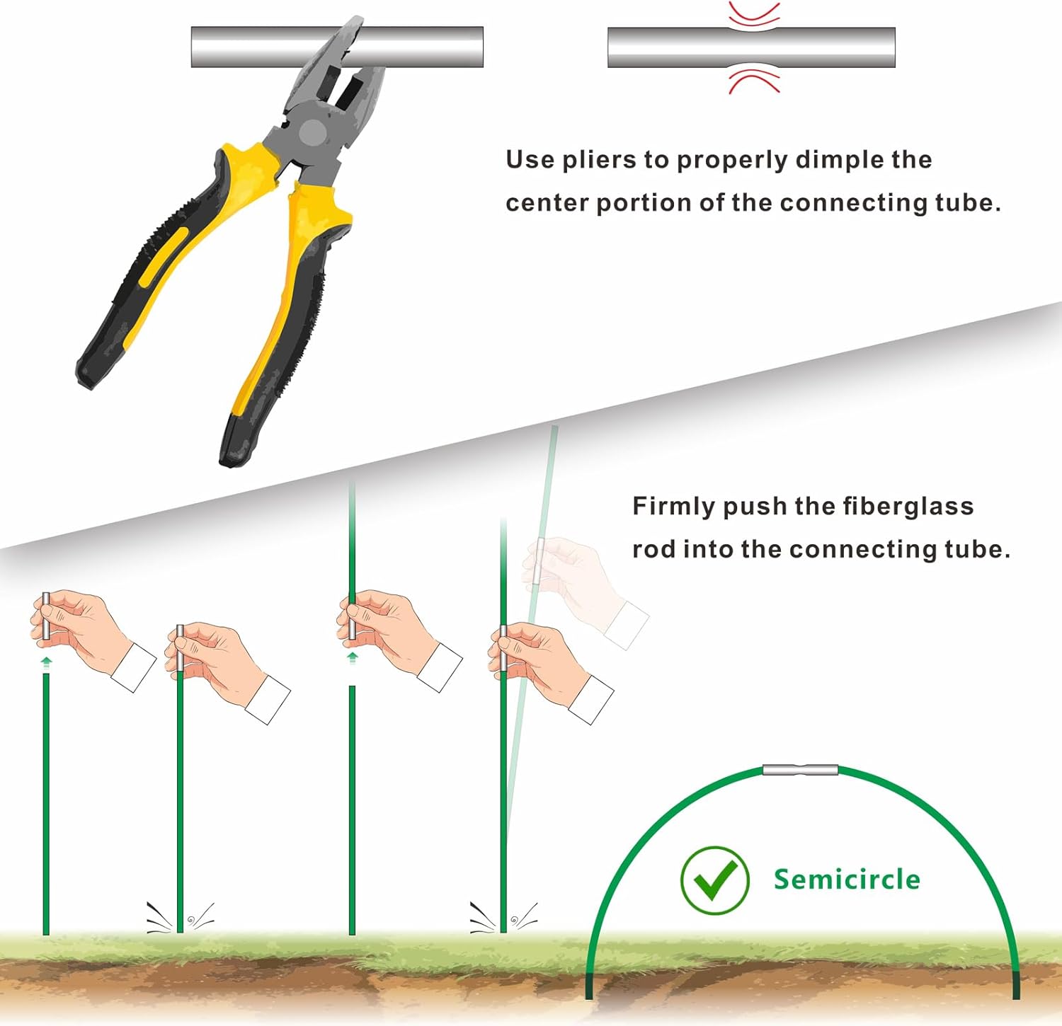 Garden Greenhouse Hoops Kit 15 Sets -2-Section Design, 8ft Grow Tunnels Poles Plant Raised Beds, 30 Pcs 4ft Solid Fiberglass Support Stakes 15 Metal Connectors -Quick Assembly No Loose Parts (Black)