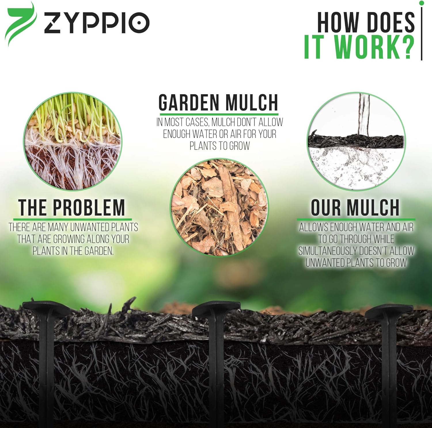 - Improved Water Aeration – Zyppio recycled rubber mulch rolls are designed to let air and water penetrate more effectively to ensure plant roots are getting optimal support. It’s also scatter proof, durable, and supports plants all year-round.