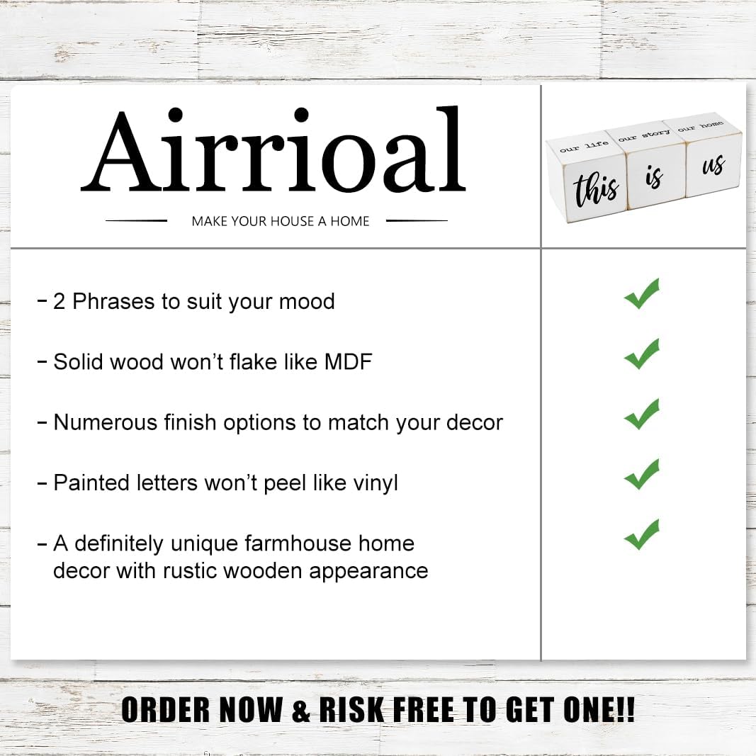 - Handcrafted Wooden Blocks - This listing is for 3 double-sided blocks with this is us on the front and “our life“ ” our story “ ”our home“ on the top, which adds farmhouse atmosphere to your home.