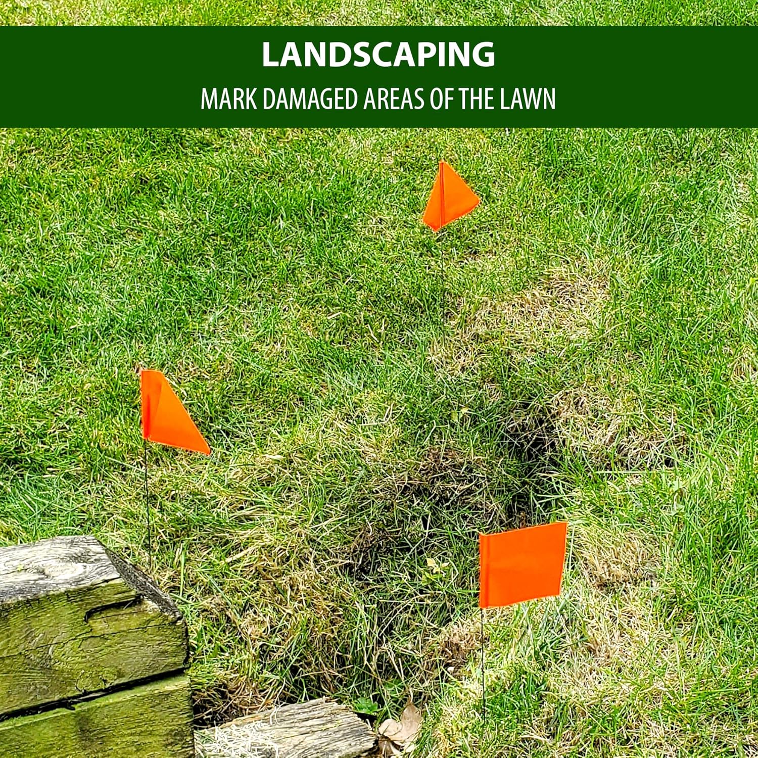 - HIGHLY VERSATILE - Use our small yard flags to mark the boundaries of your lawn, plants in your garden, or landscaping plans. Use these marking flags for lawn projects where you need high visibility.