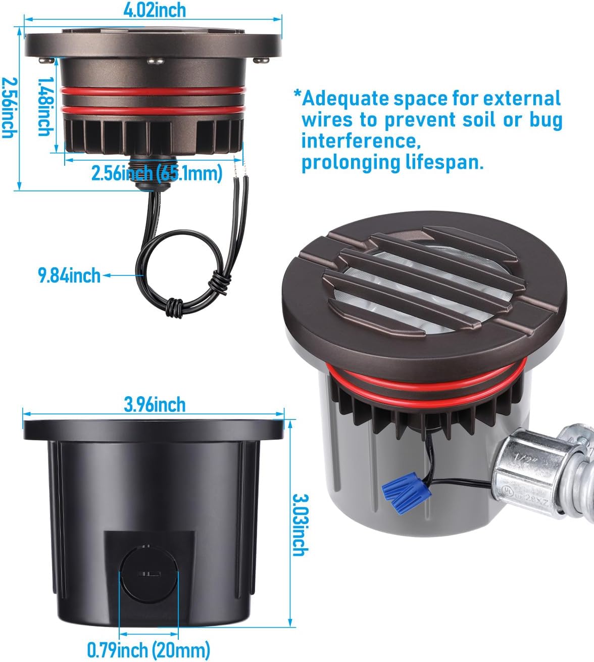 LEONLITE Dia. 4 Inch Well Lights Landscape LED In Ground, Grated Top, 3000K Warm White, 12-24V AC/DC CRI90 Low Voltage Garden Landscaping, Oil Rubbed Bronze Aluminum Housing, Pack of 6