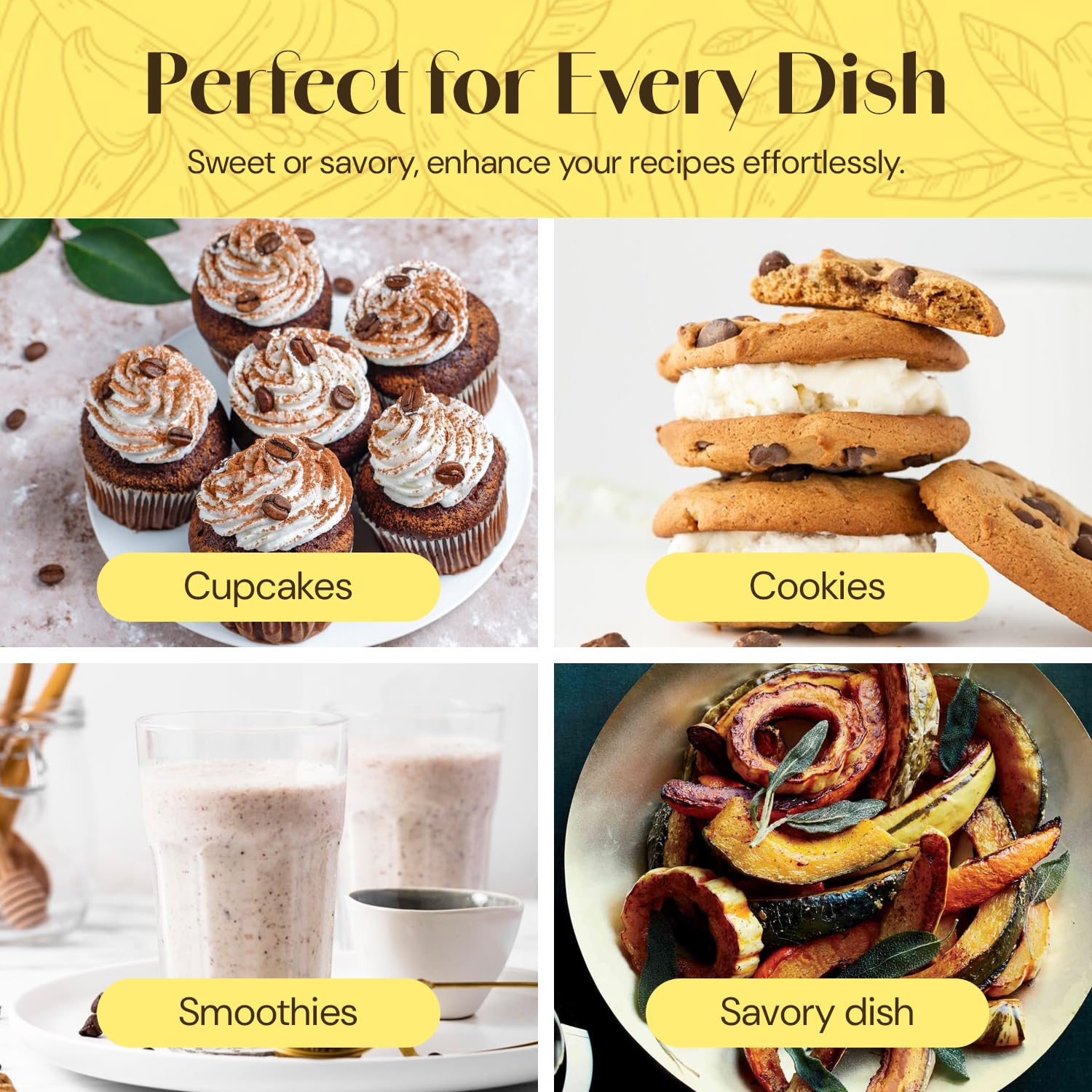 - Flavorful Drinks: This premium vanilla flavor is suitable for smoothies, protein shakes, hot and cold beverages, coffee, tea, bullet-coffee, and chai