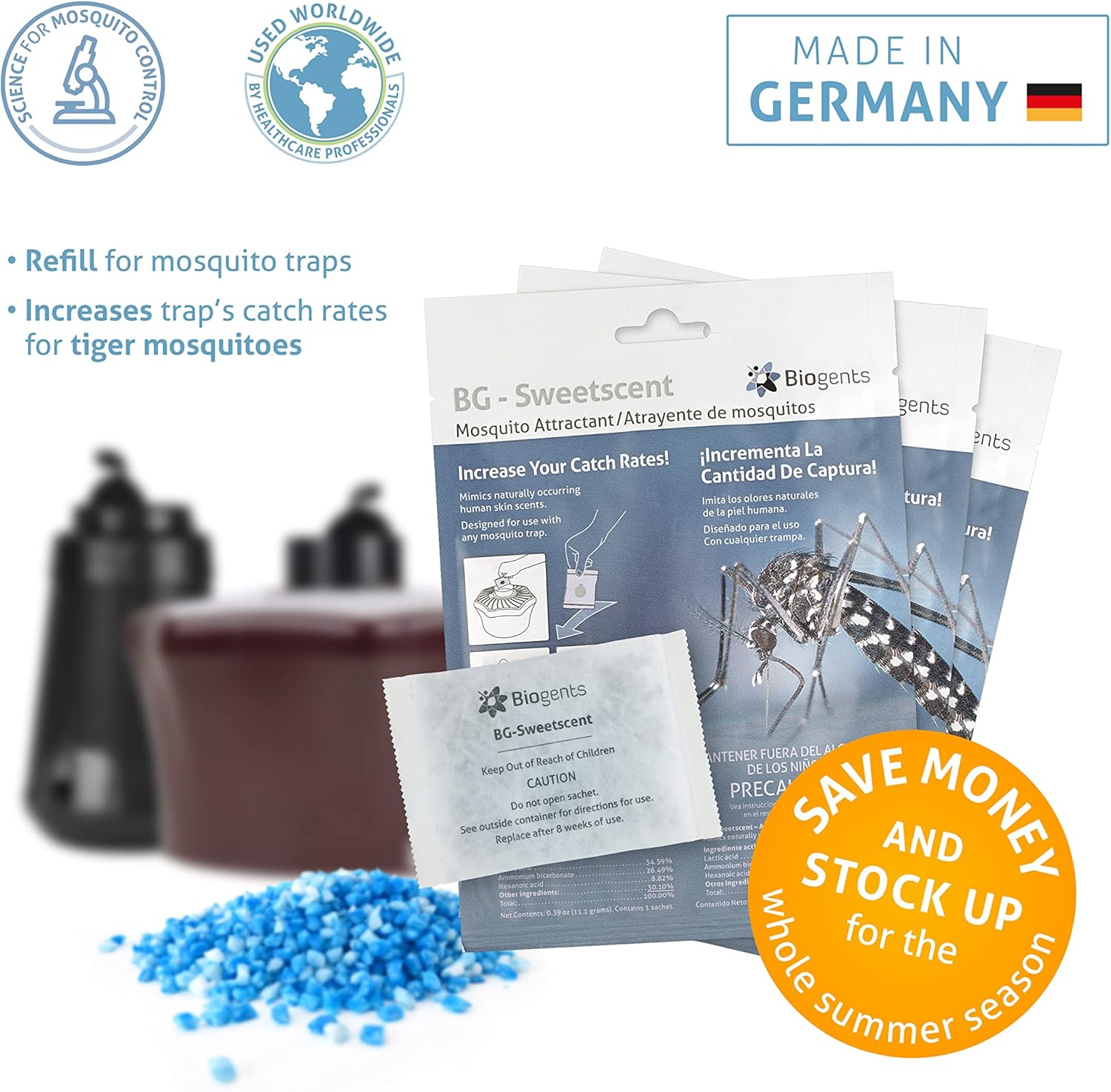 Biogents Sweetscent • Mosquito Attractant • Mosquito Lure • Mosquito Magnet • Compatible with All Mosquito Traps - Season Pack - Set of 3