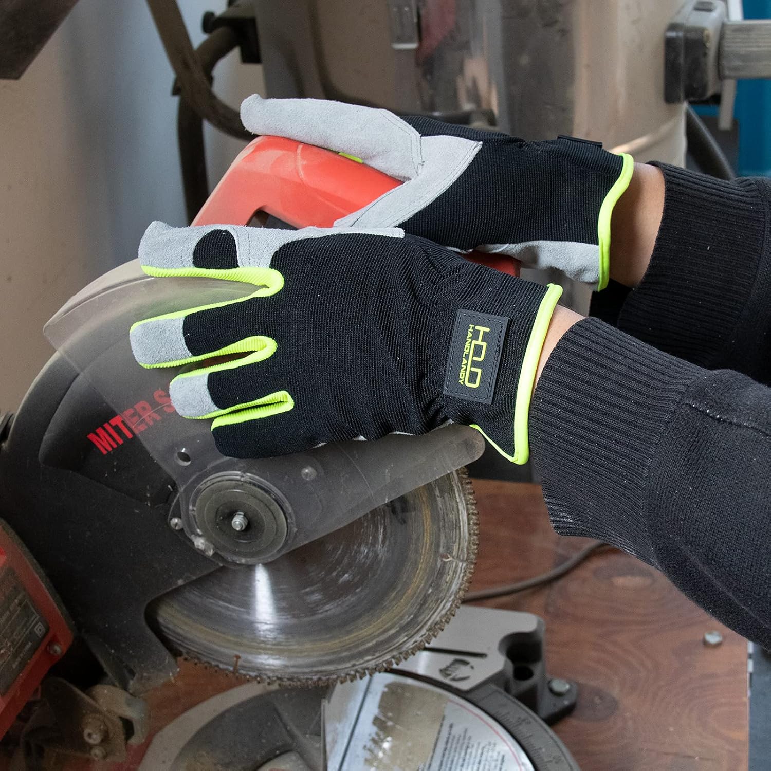- Premium Shoulder Split Cowhide Leather Palm: One piece palm design leather working gloves provides maximum dexterity & durability & grip.