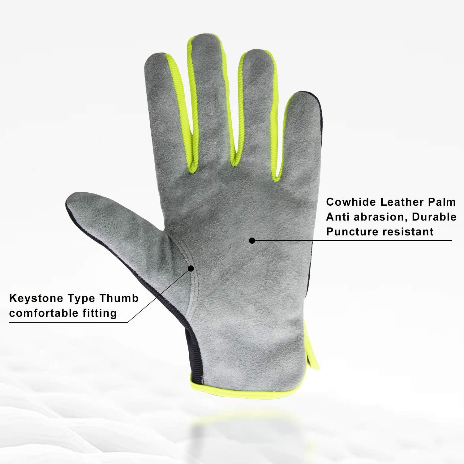- Tough Leather Work Gloves for Daily Protection: Made with genuine cowhide, these leather work gloves are built for durability and comfort. The thick leather palm provides reliable protection from cuts, scrapes, and punctures—perfect for handling tools, yardwork, or heavy-duty tasks