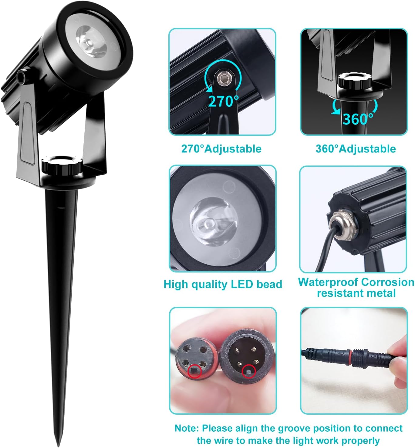 - Adjustable Light & Solar Panel: The solar panel and light can be installed in the ground or mounted on the wall with included screws. Each ground light with 118inch/3m cable, 270° adjustable freely up or down to meet different requirements.