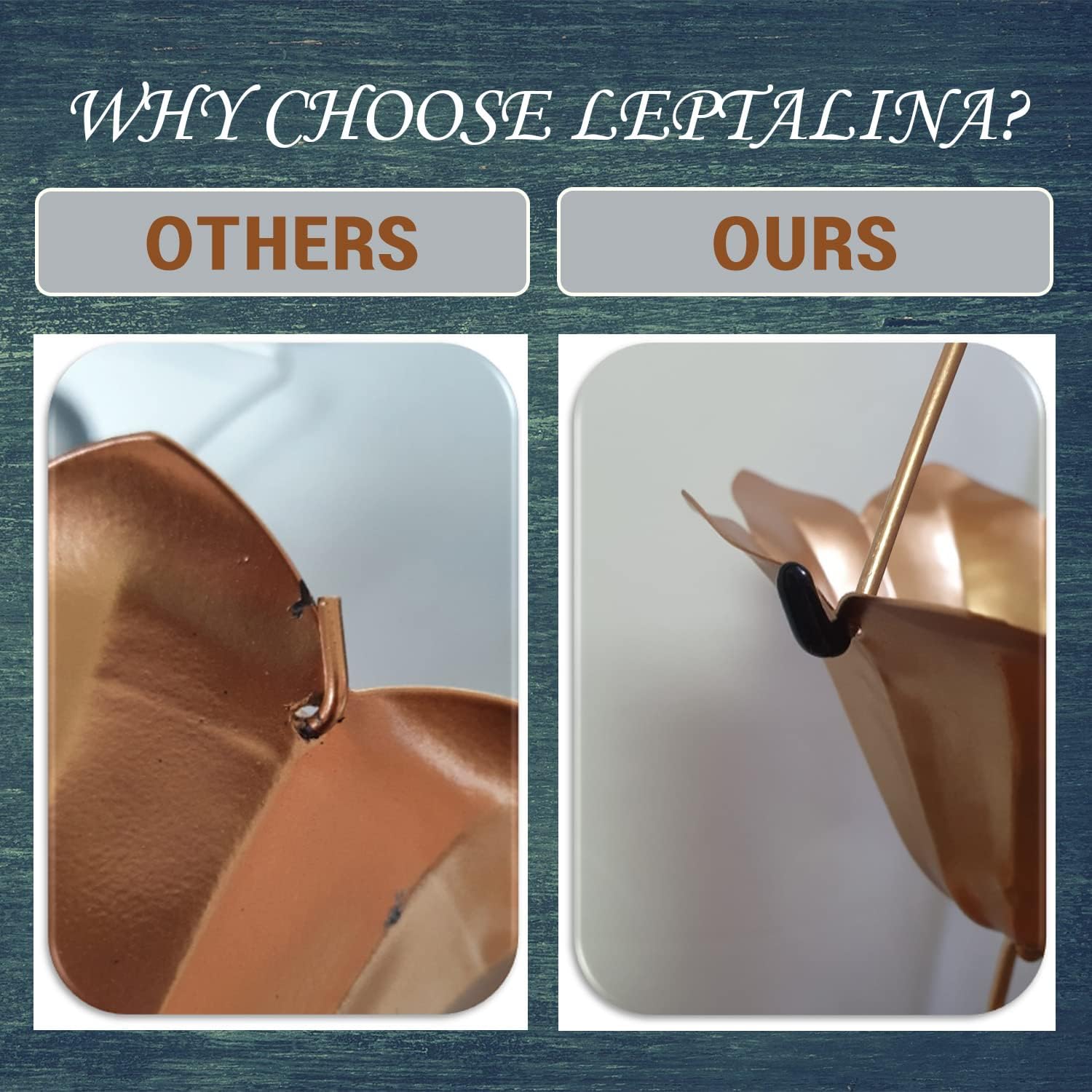 - We make our rain chains last, so we’ve coated each link and cup with rust-proof electrical paint. Moreover, the rain chains are incredibly sturdy, so they stay anchored to your gutters in the strong winds.