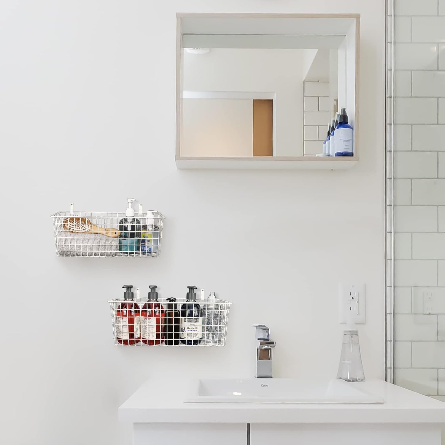 - Sturdy Metal Wire Baskets: These metal wall baskets are made of solid metal wire with anti-rust coating, sturdy and durable for long lasting. The wire baskets for organizing open design allows you to see the items inside the basket, which makes it easy to find the item you need. And easy to clean, just wipe clean with a soft damp cloth and dry towel.