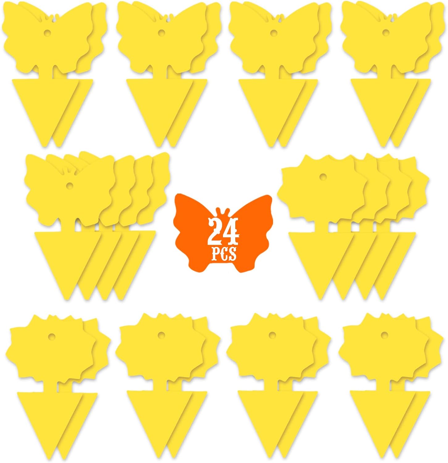 24PCS Fruit Fly Sticky Traps, Fungus Gnat Traps Insect Trap for Plants Kitchen Indoor and Outdoor(24 Light Yellow)