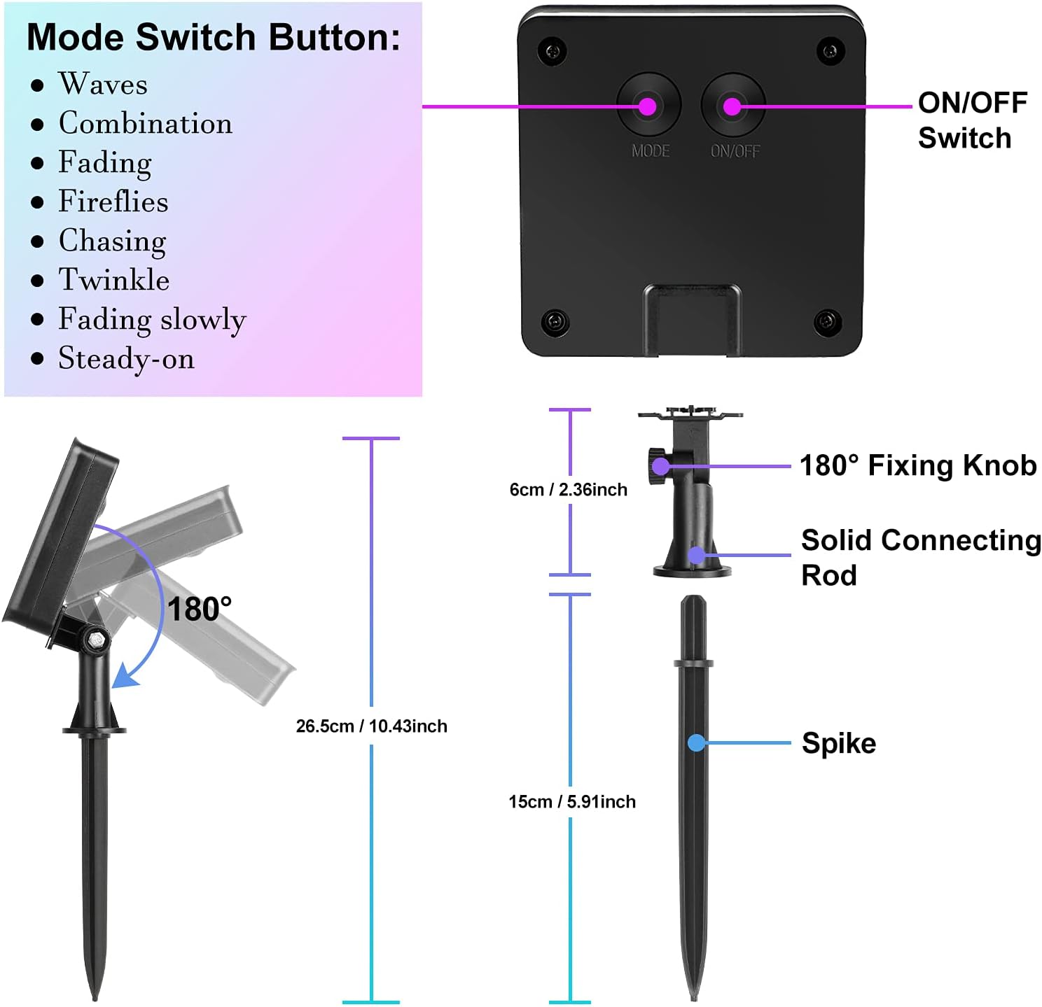 - Special Feature : Solar-powered, weatherproof, waterproof