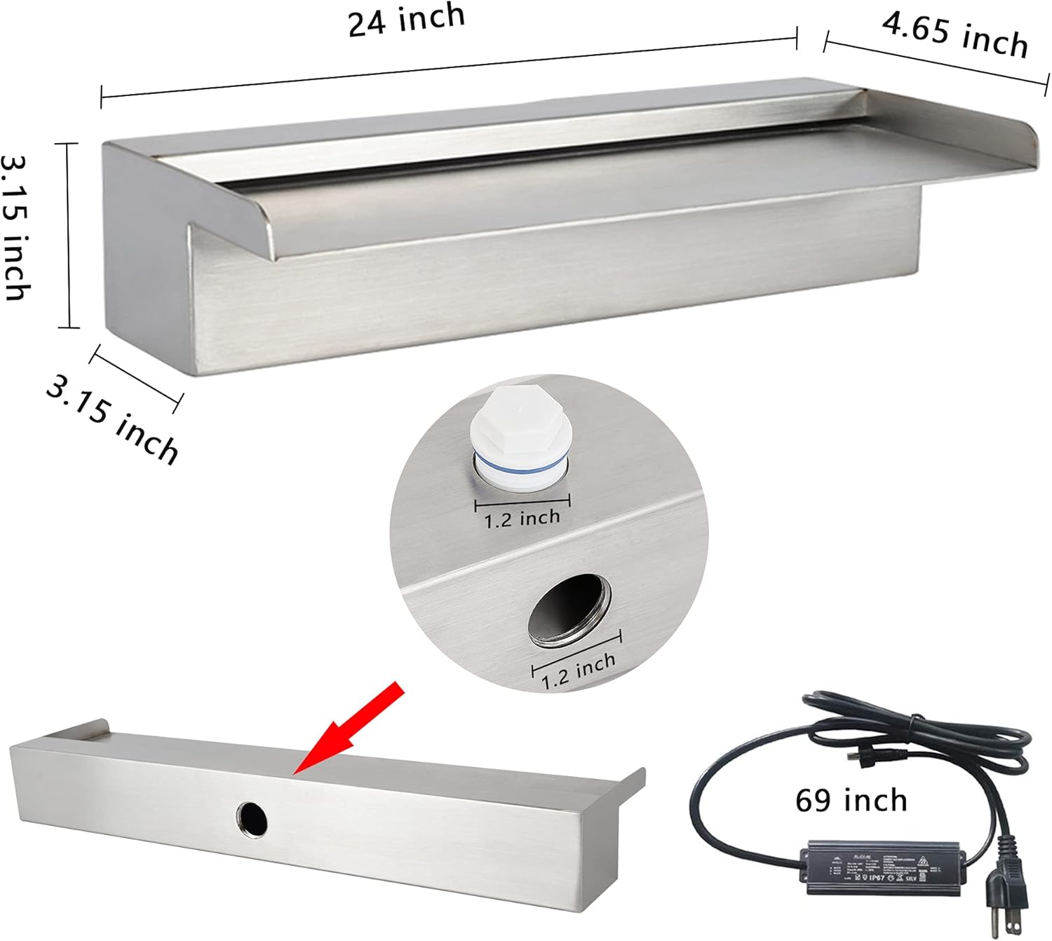 - ❤【DECORATION POOL FOUNTAIN】PONDO 24" LED waterfall spillway makes your patio and swimming pool elegant, fashionable and beautiful. The color change of LED lights and the gentle sound of water running make your patio more special at night. It comes with one spillway, IP68 led strip, remote, IP67 adaptor and supply cord.