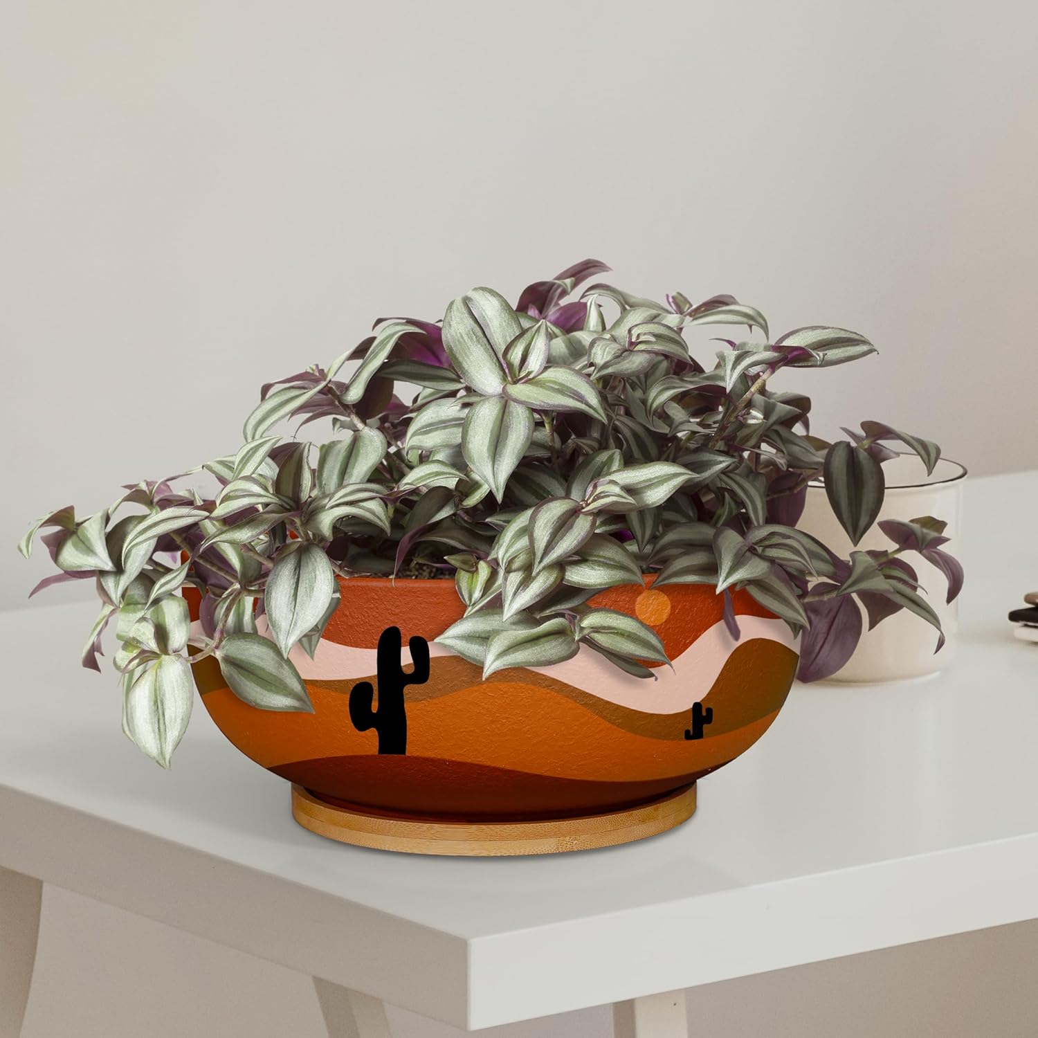 SQOWL 10 Inch Large Terracotta Planter Pot,Clay Succulent Bonsai Planter with Drainage Hole and Bamboo Saucer for Indoor Plants