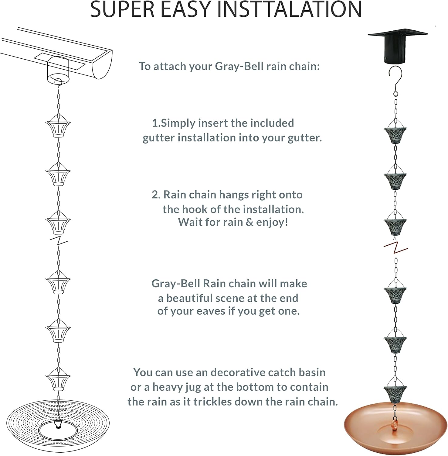 - EASY INSTALLATION: Remove your downspout and attach the included gutter adapter to the opening. The 8.5FT chain is adjustable to fit any length.