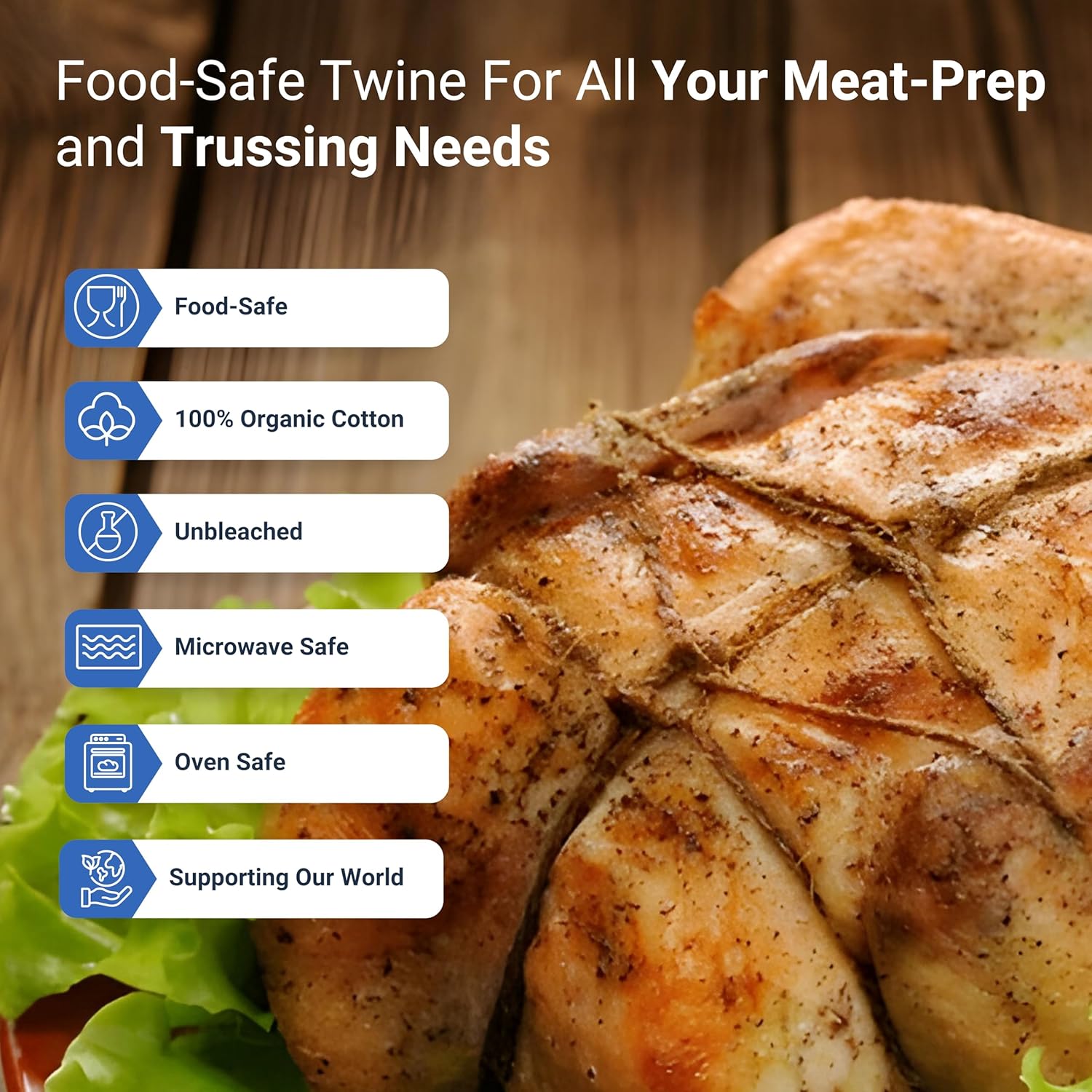 Organic Butcher’s Twine for Cooking & Trussing – 1.2mm Heavy-Duty Natural Cotton Kitchen Twine 1000 Feet – Food-Safe, Oven-Safe String for Meat, Turkey, Baking, & Crafts