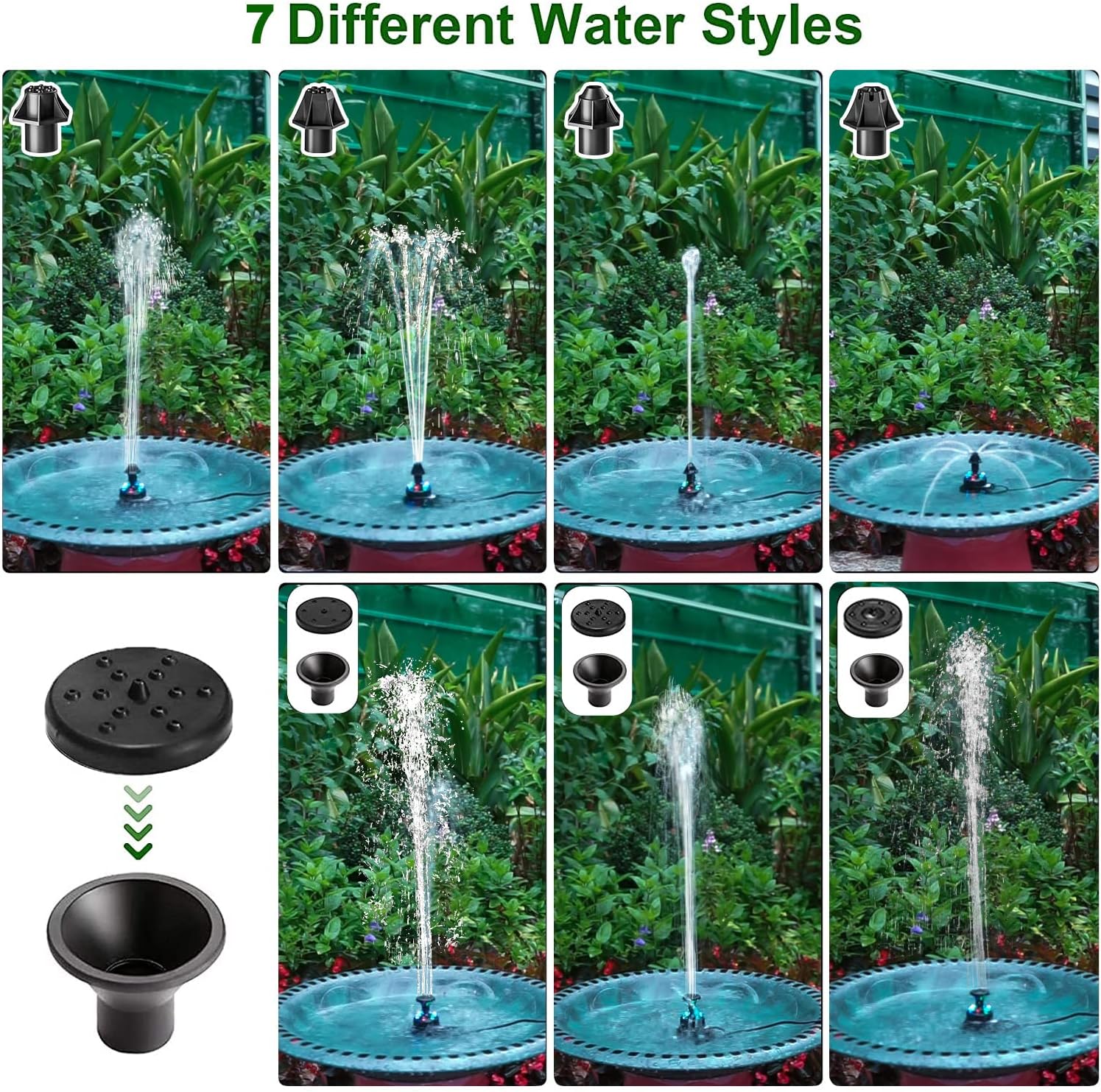 24-Hours Working Bird Bath Fountains Electric, Adjustable Quiet Water Fountain Pump with LED Lights for Garden,Small Fish Tank, Pond,Water Features - 7 Nozzles,16.4Ft Power Cord