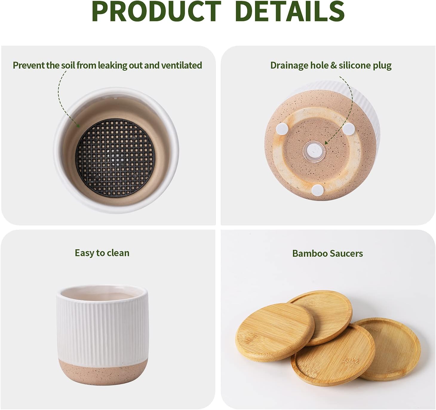 - Ceramic Material: The plant pots are made of high-temperature fired stoneware, which is durable and easy to clean.