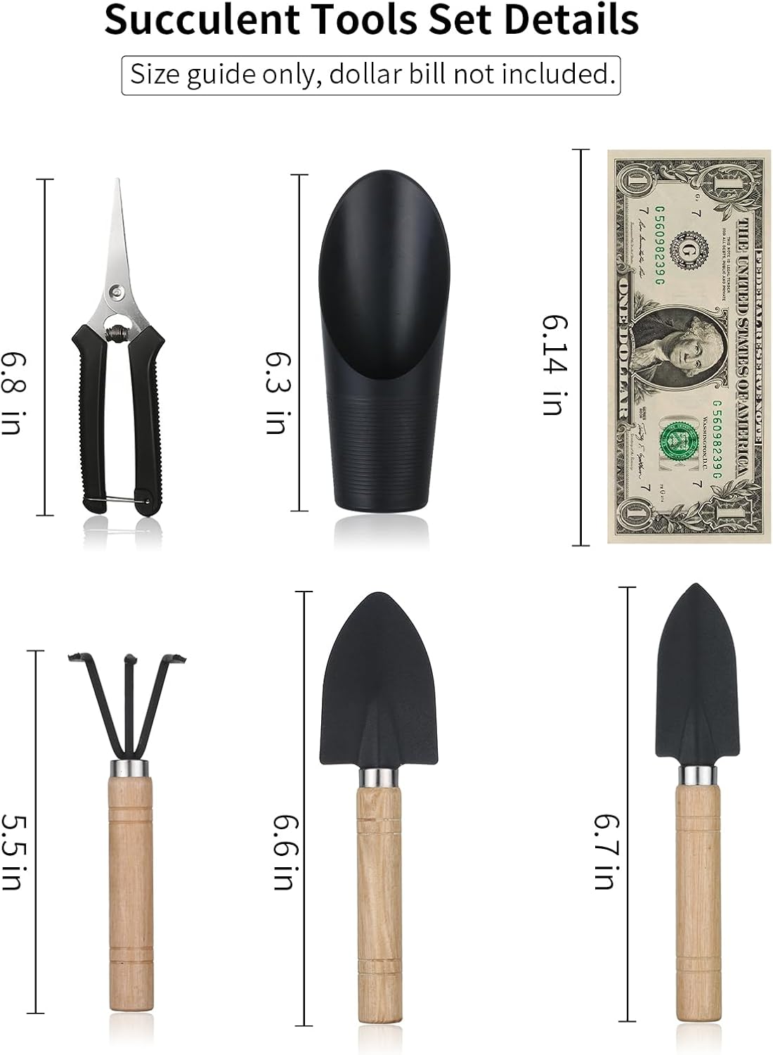 - [OUR MISSION] Succulent tools set is good helper for your small and delicate projects gardening.Our customer rule number 1 :customer is always right!We are committed to providing all customers with high-quality products and the best service, Should you have any questions about the mini garden tools set or after-sale service, please do not hesitate to contact us. We are here for support and advice!
