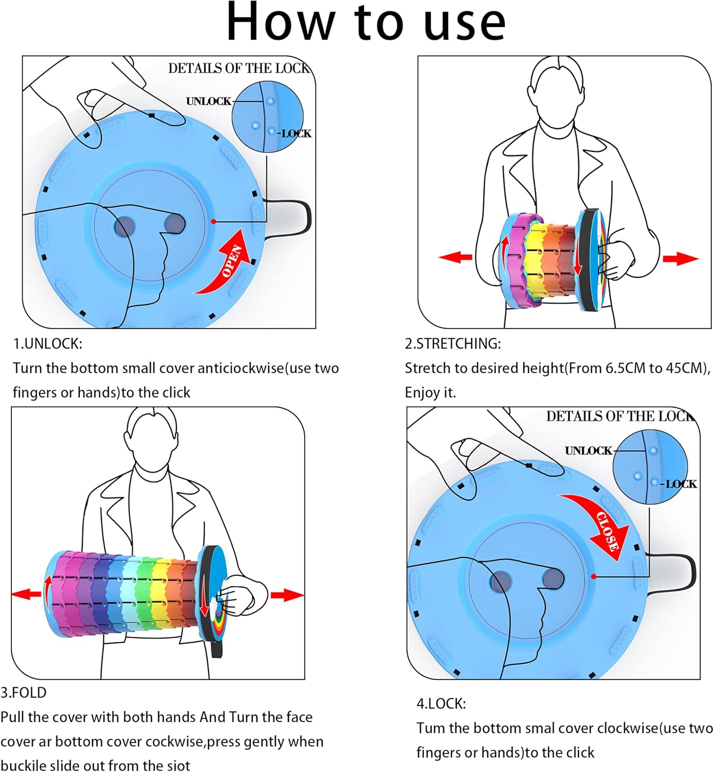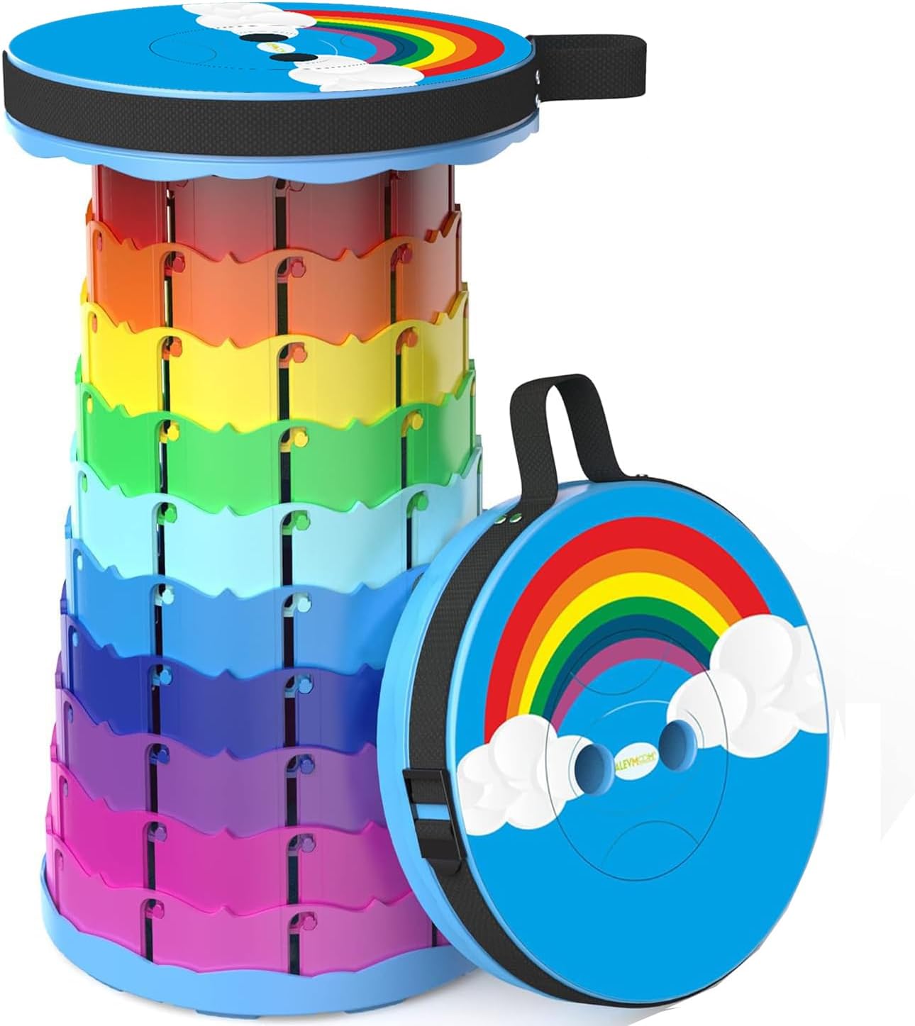 - ăSafety and Stabilityă Retractable stool is made of high-strength heavy duty environmental friendly material plastic PP, the cylinder shape structure, tight connecting clasps, and the non-slip base ensure the stability of collapsible stool, provide safe and comfortable seat. The maximum load capacity is as much as 440lbs!