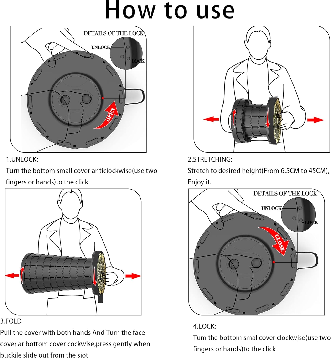 - ăU.S. Patented,Unique Pattern Designă Unique stable structure allows the pop up stool to open and close easily in just seconds, and it locks firmly in place once opened. Collapsible Stool is convenience,lightweight and Safety! These are really achieved through careful structural design.The patented pattern design will give you a good mood. Suitable for yourself or a good choice for family, friends and relatives .