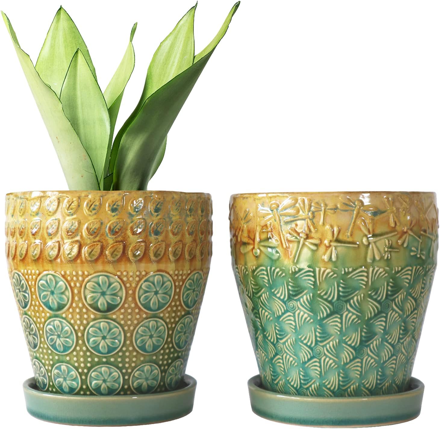 6 Inch Ceramic Planter with Drainage Hole and Saucer for Plants, Indoor-Outdoor Large Round Succulent Orchid Flower Pot, Set of 2