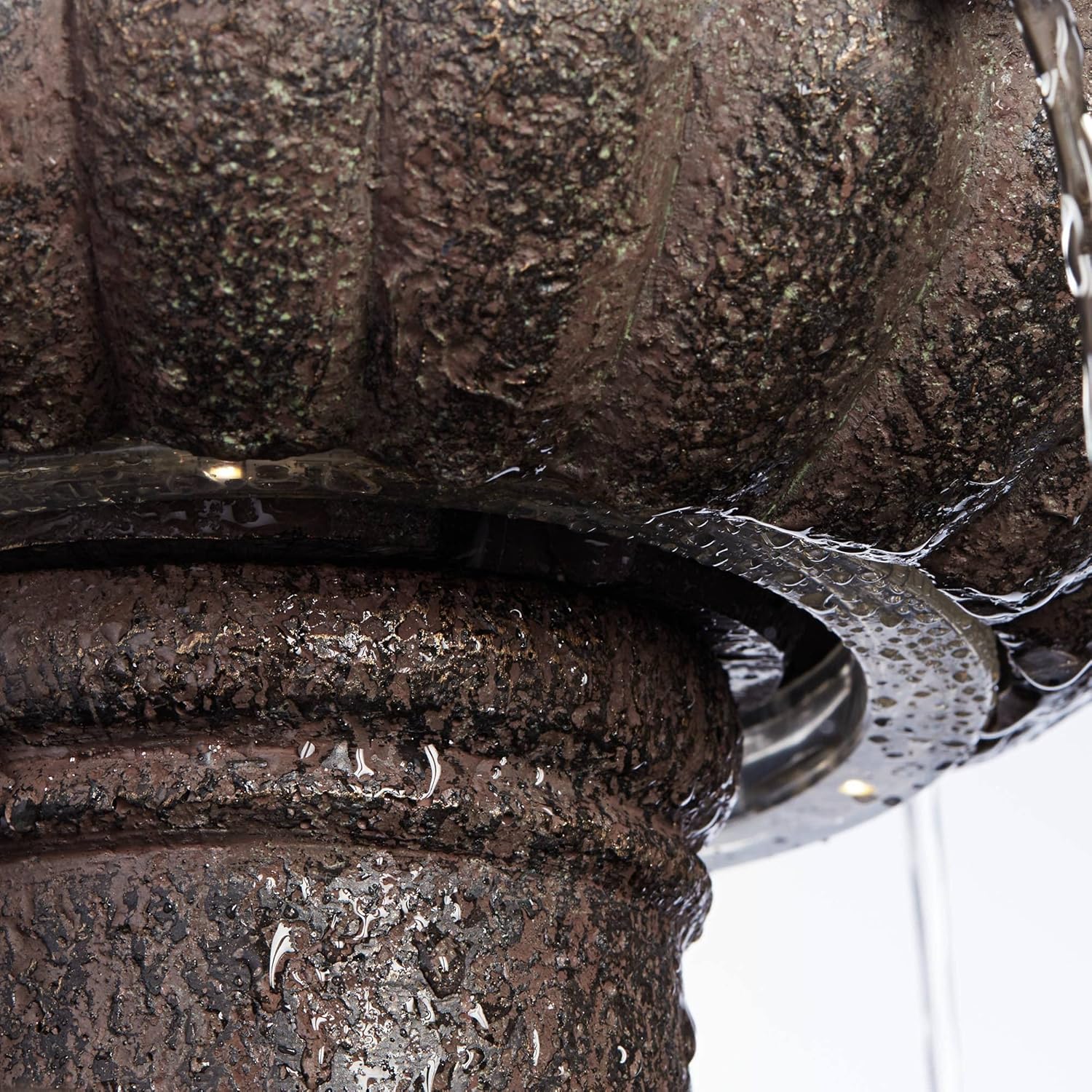 - 【Elegant charm for outdoor spaces】A courtyard fountain, floor fountain, or outside fountain brings timeless beauty to your front porch or backyard water feature, blending seamlessly with any patio waterfall or outdoor design. Lights shine down to illuminate the bottom two tiers. Flow of water from top into the lower tiers.