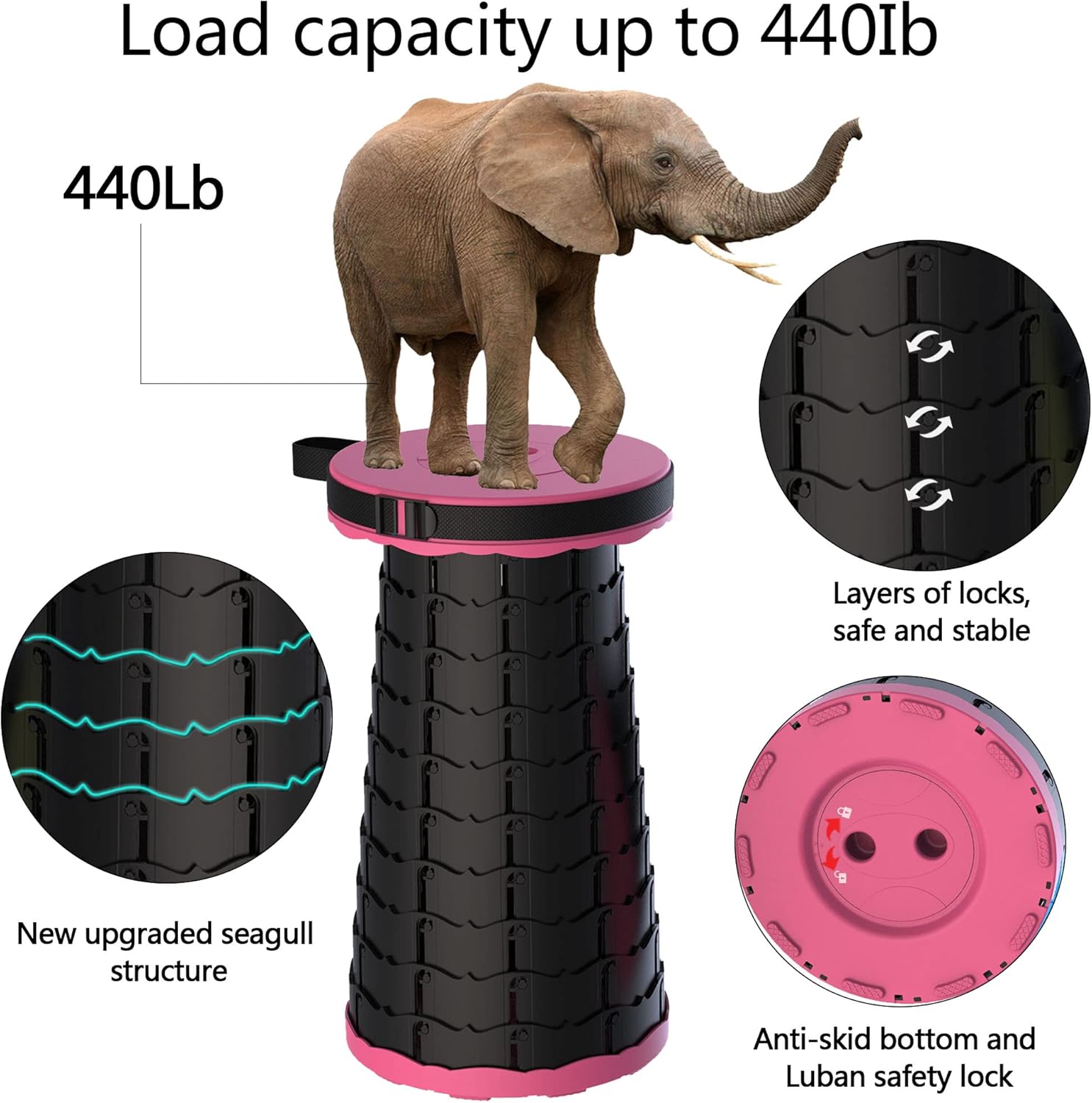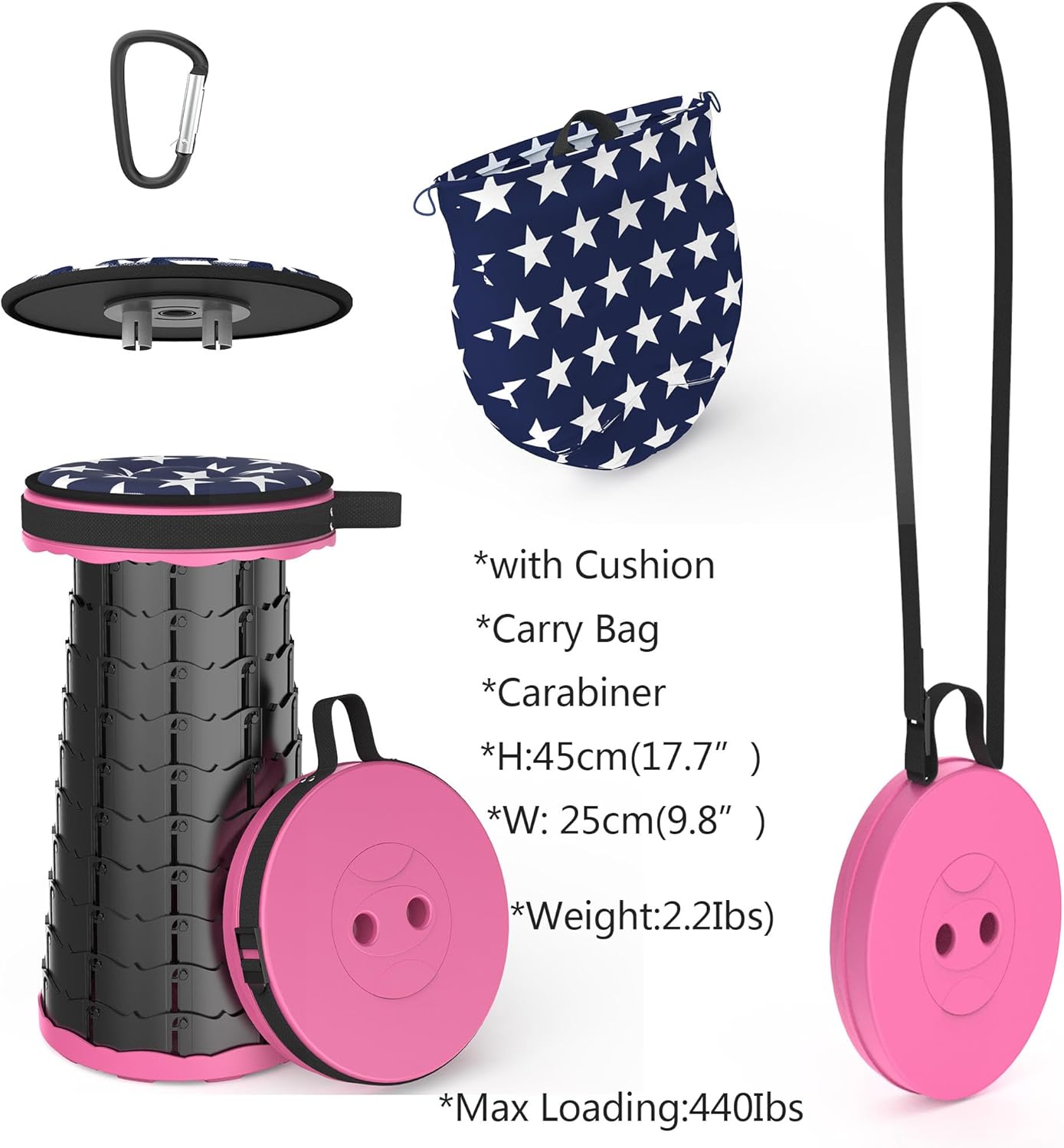 ALEVMOOM Upgraded Folding Stool with Cushion,Portable Collapsible Retractable Stool,Outdoor Chair,Yet More Sturdy Load Capacity 440lbs for Camping Garden Fishing Hiking BBQ with Carry Bag