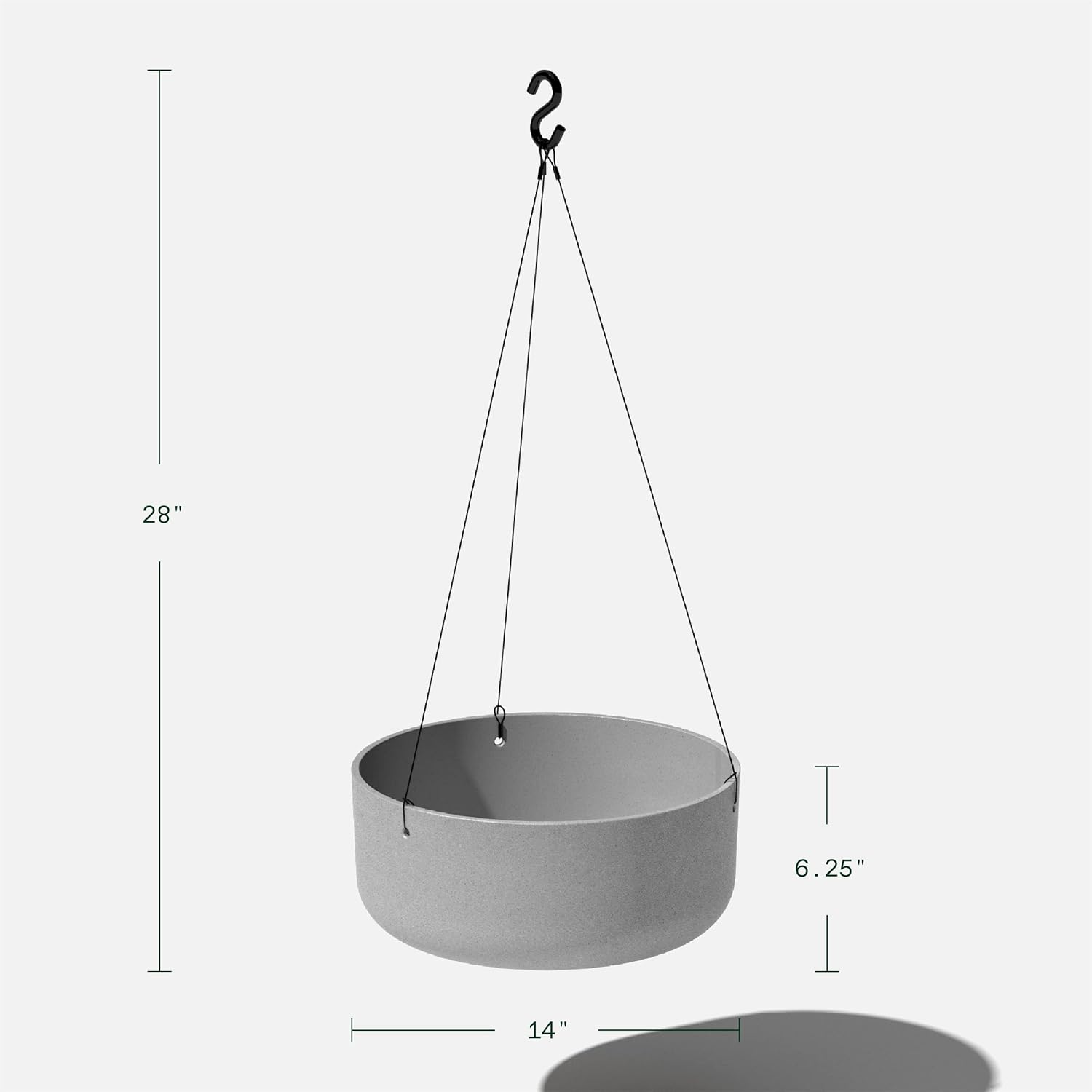 - DIMENSIONS & DETAILS: The Hanging Kona Bowl planter measures 14 Inches in diameter and 6.25 Inches in height. With the hanging attachment, it measures 28" in Height