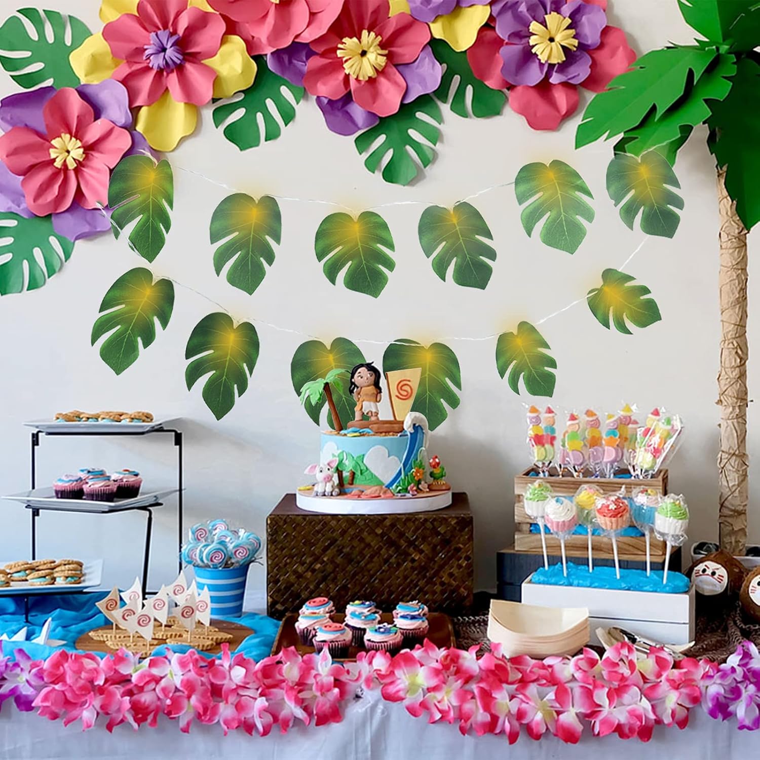 - Widely Application: This tropical artificial plants leaves string light for table decorations, luau table skirt,diner plate decorations, wall decorations, backdrop decorations, art gallery,Party decorations, skirt or cloth decorations,Craft Supplies,Restaurant Decor, Concession Stands,Juice bars,Fast Food Shop.Give you a different sense of visual impression