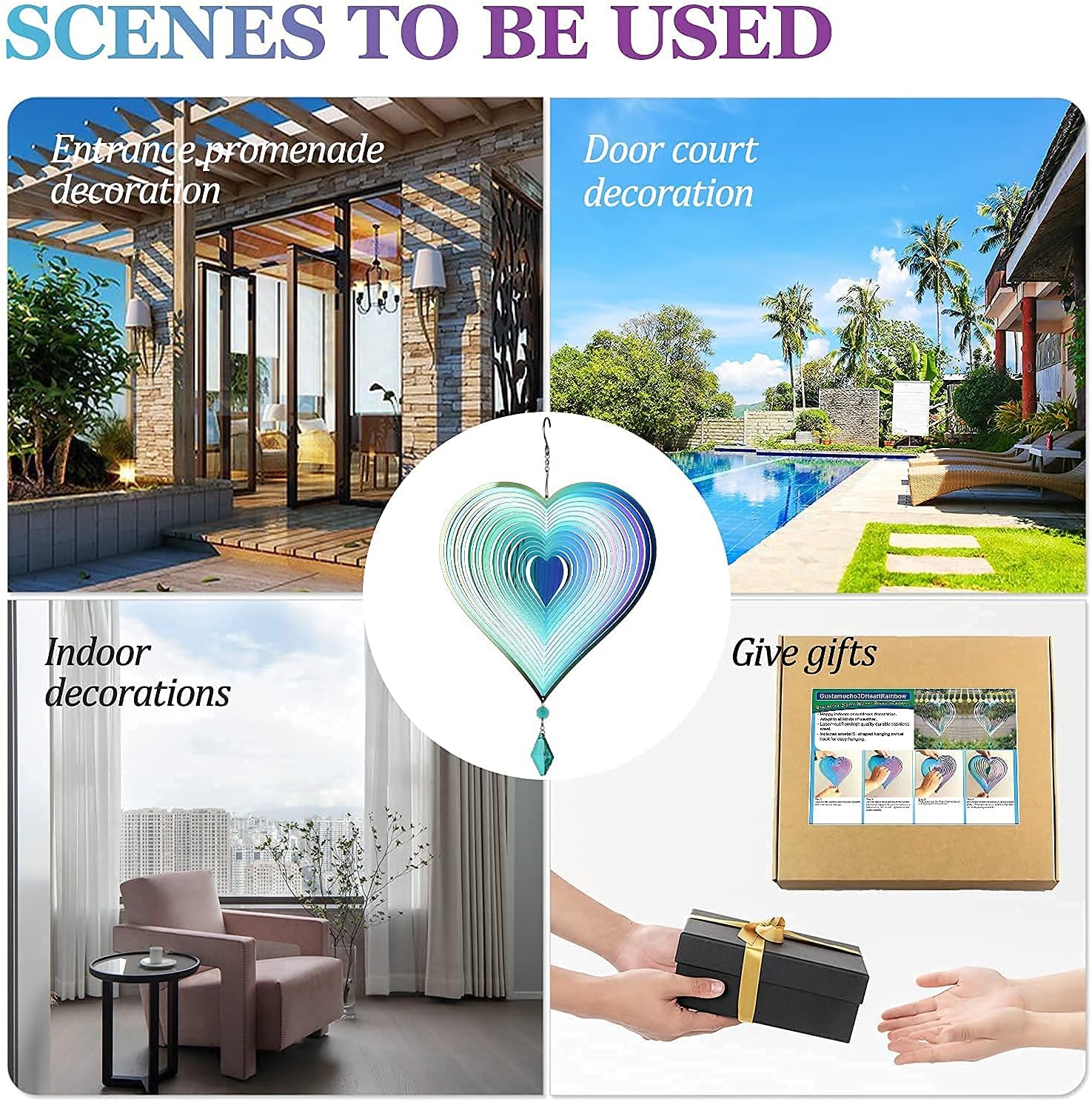 Wind Spinner, Hanging Wind Sculptures,Wind Spinners for Yard and Garden Decor,Yard Decorations Outdoor,Hanging Art Ornaments for Garden Yard Balcony Decor (Rainbow Heart)