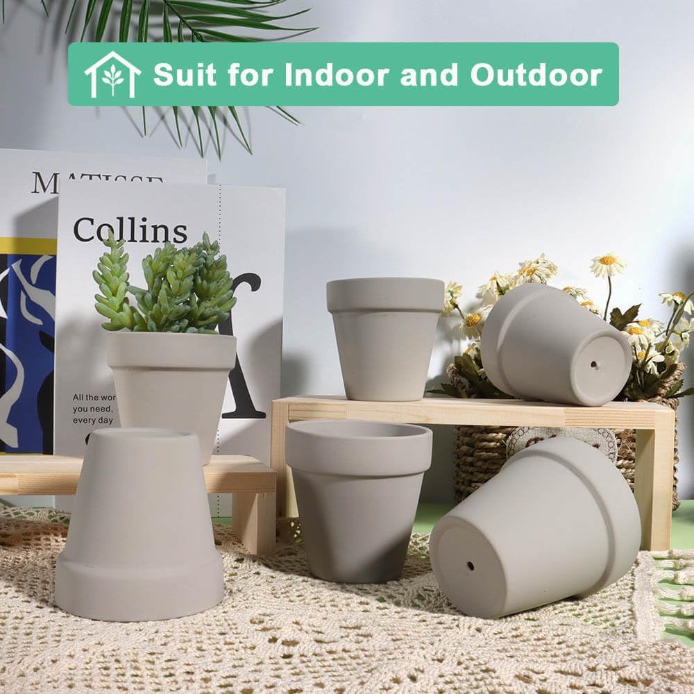 vensovo 3 Inch Grey Terra Cotta & Terracotta Pots with Drainage - 20 Pack Clay Flowerpots, Succulent Nursery Planter Great for Plants, Crafts, Wedding Favor