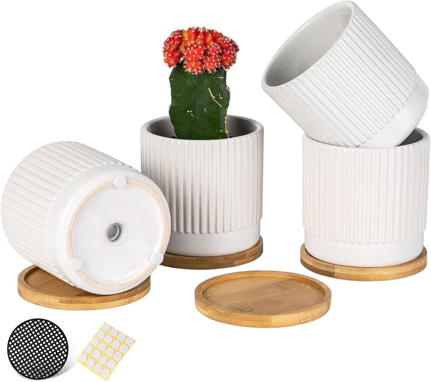 - Modern Design Planters: White plant pots surface with elegant stripes design full of artistic sense. Simple style indoor plant pots will be placed in various suitable scenes, such as courtyards, balconies, and other places that need to be decorated.