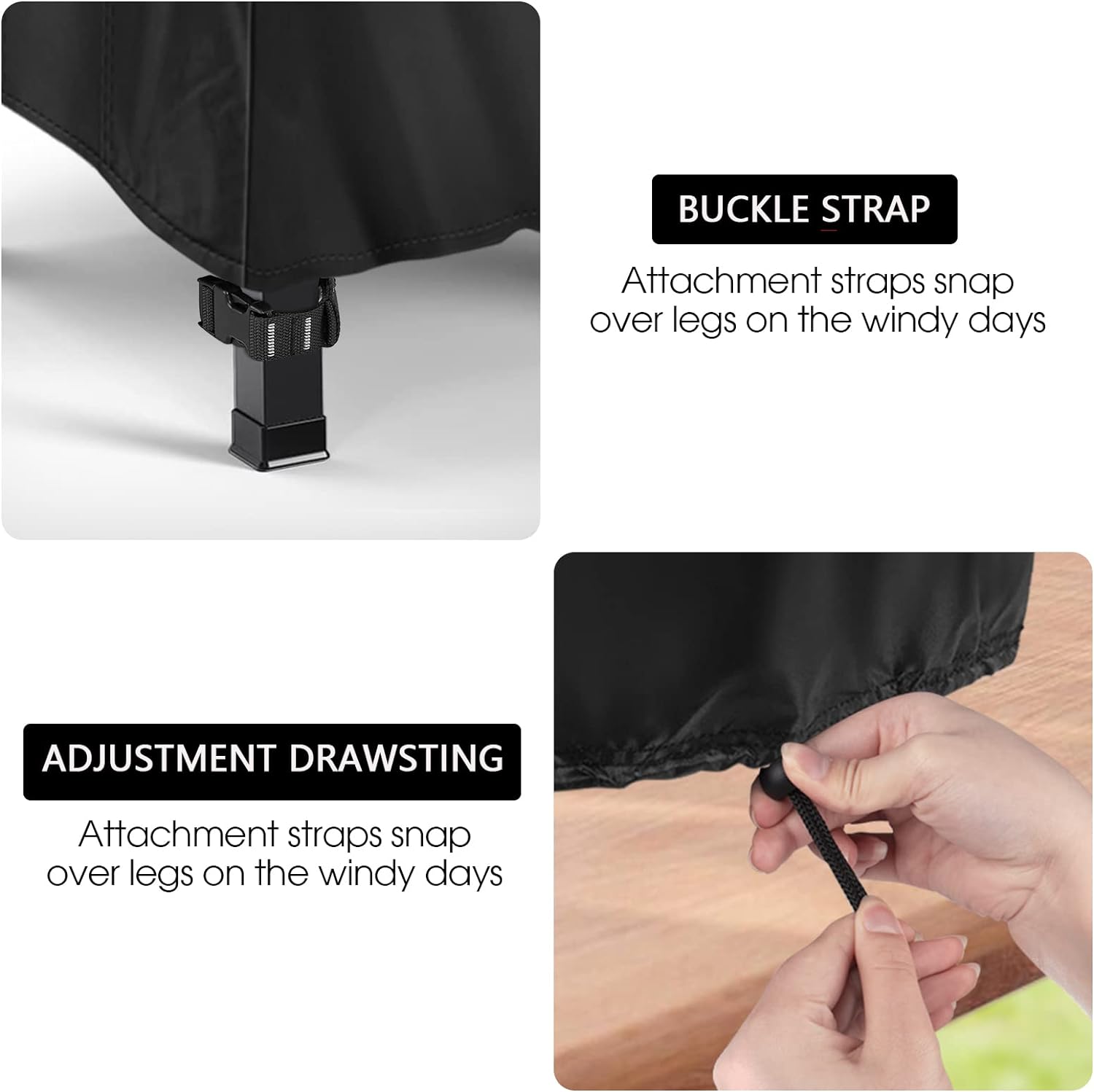 - Vents and Straps: Each side has a handle for better installation and movement, and the bottom drawstring can be easily adjusted to fit your pre table more safely and prevent wind and rain. There is a vent on each side to prevent damp.